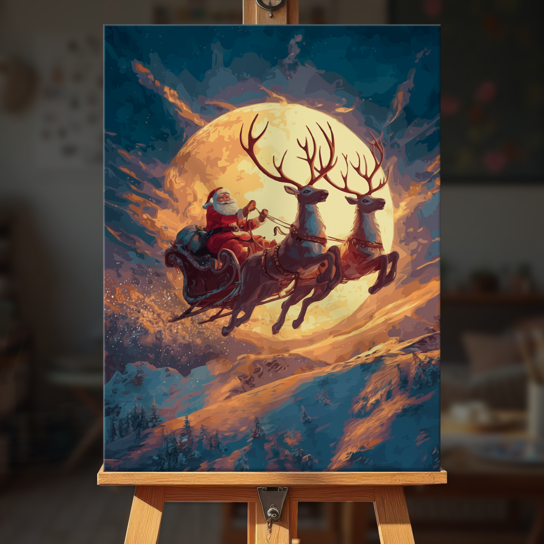 The canvas is pre-stretched on a wooden frame โ ready to hang when finished.