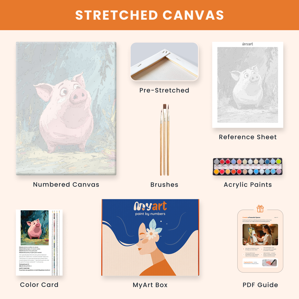 The canvas is pre-stretched on a wooden frame — ready to hang when finished.