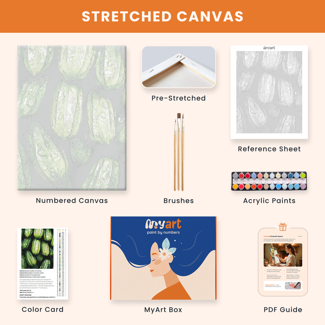The canvas is pre-stretched on a wooden frame — ready to hang when finished.