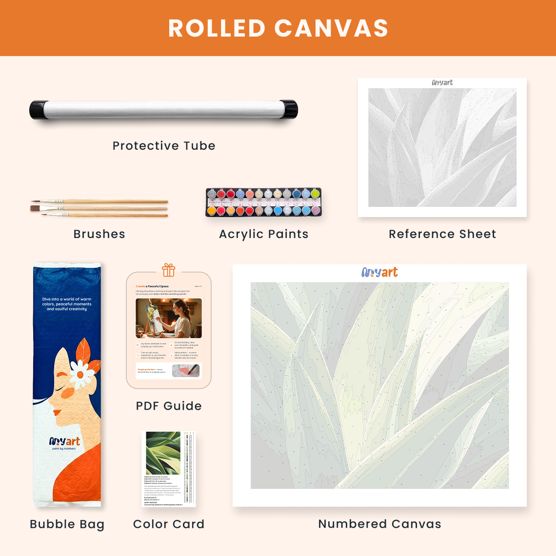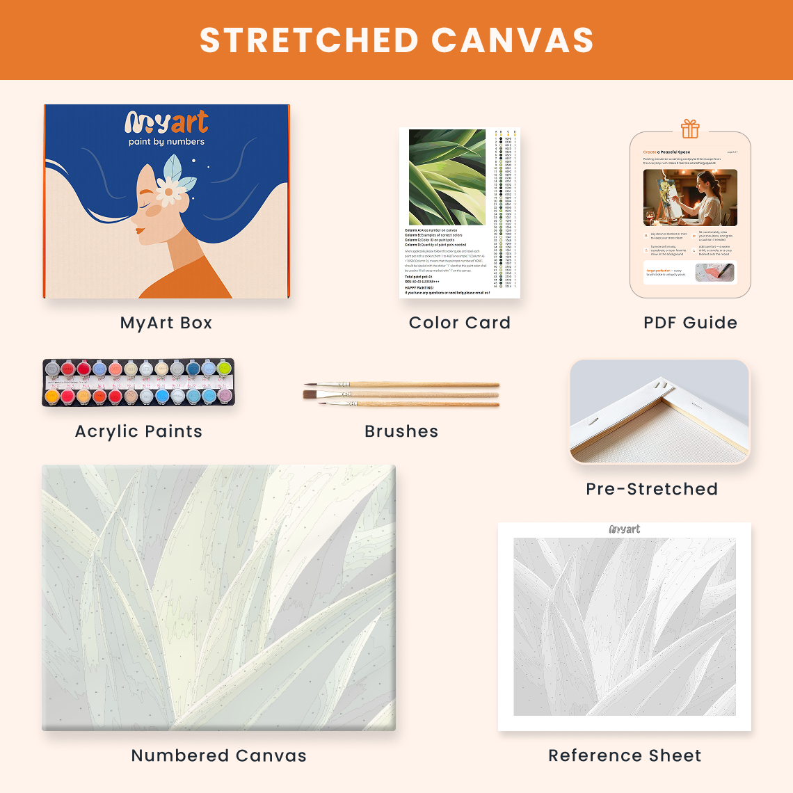 - Premium acrylic paint set (pre-mixed and numbered)