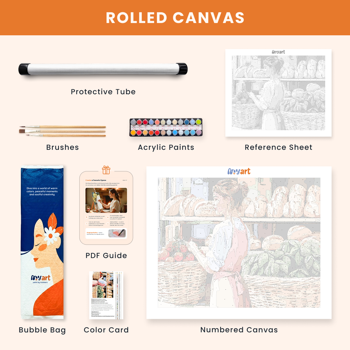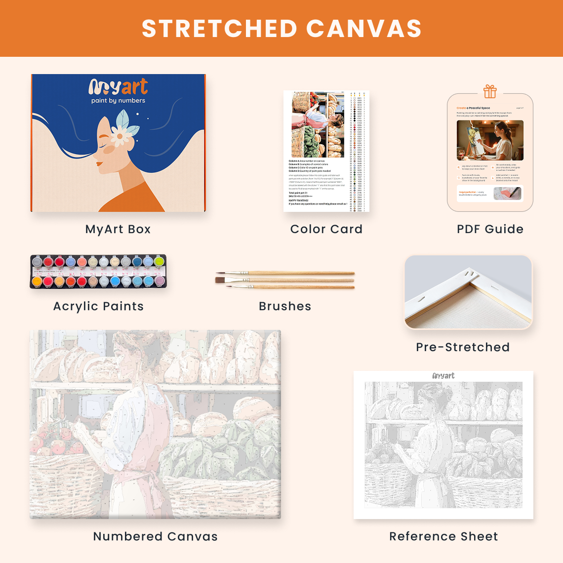 - Premium acrylic paint set (pre-mixed and numbered)