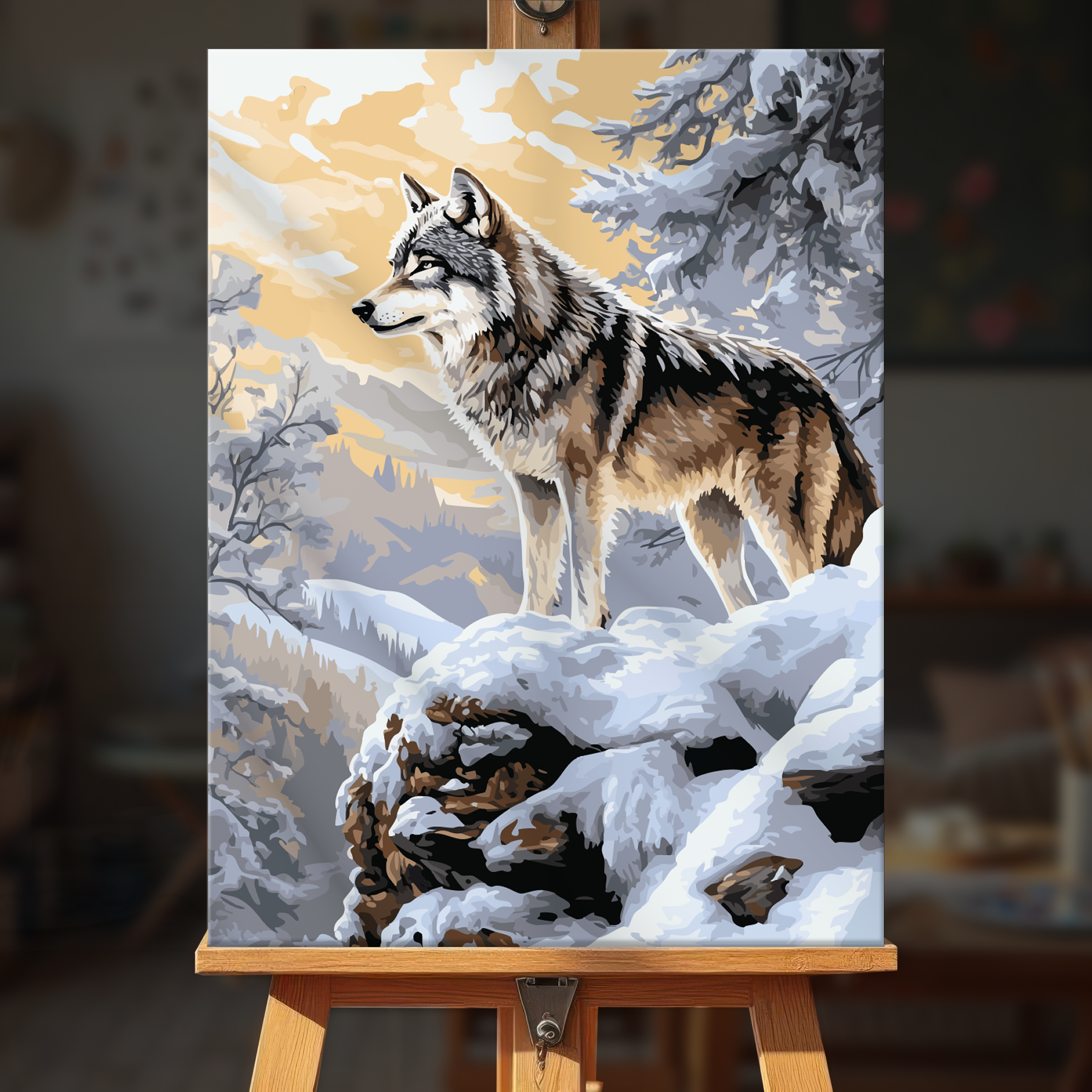 The canvas is pre-stretched on a wooden frame — ready to hang when finished.