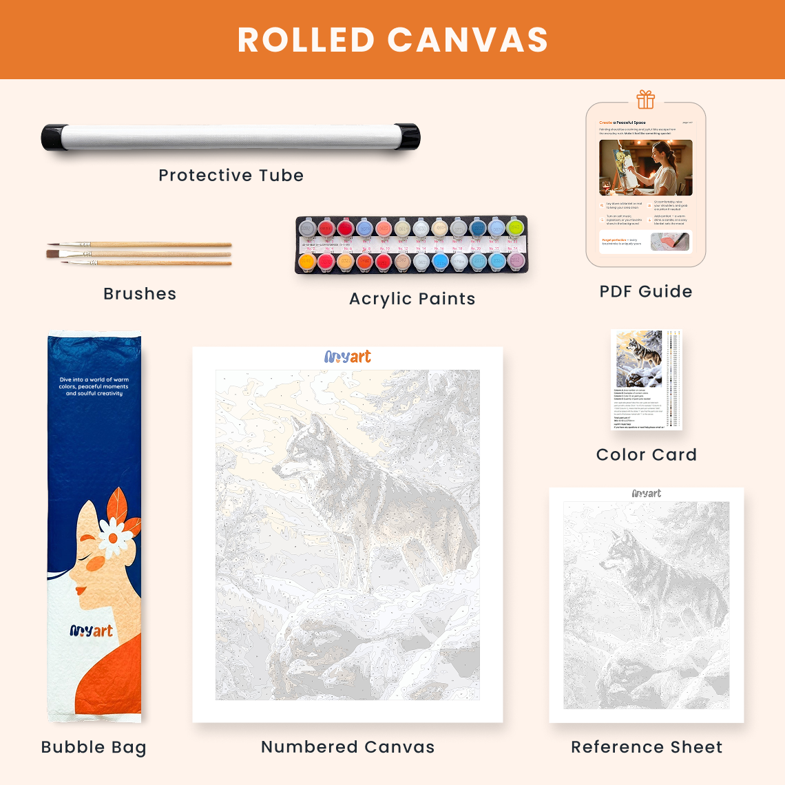 - Premium acrylic paint set (pre-mixed and numbered)
