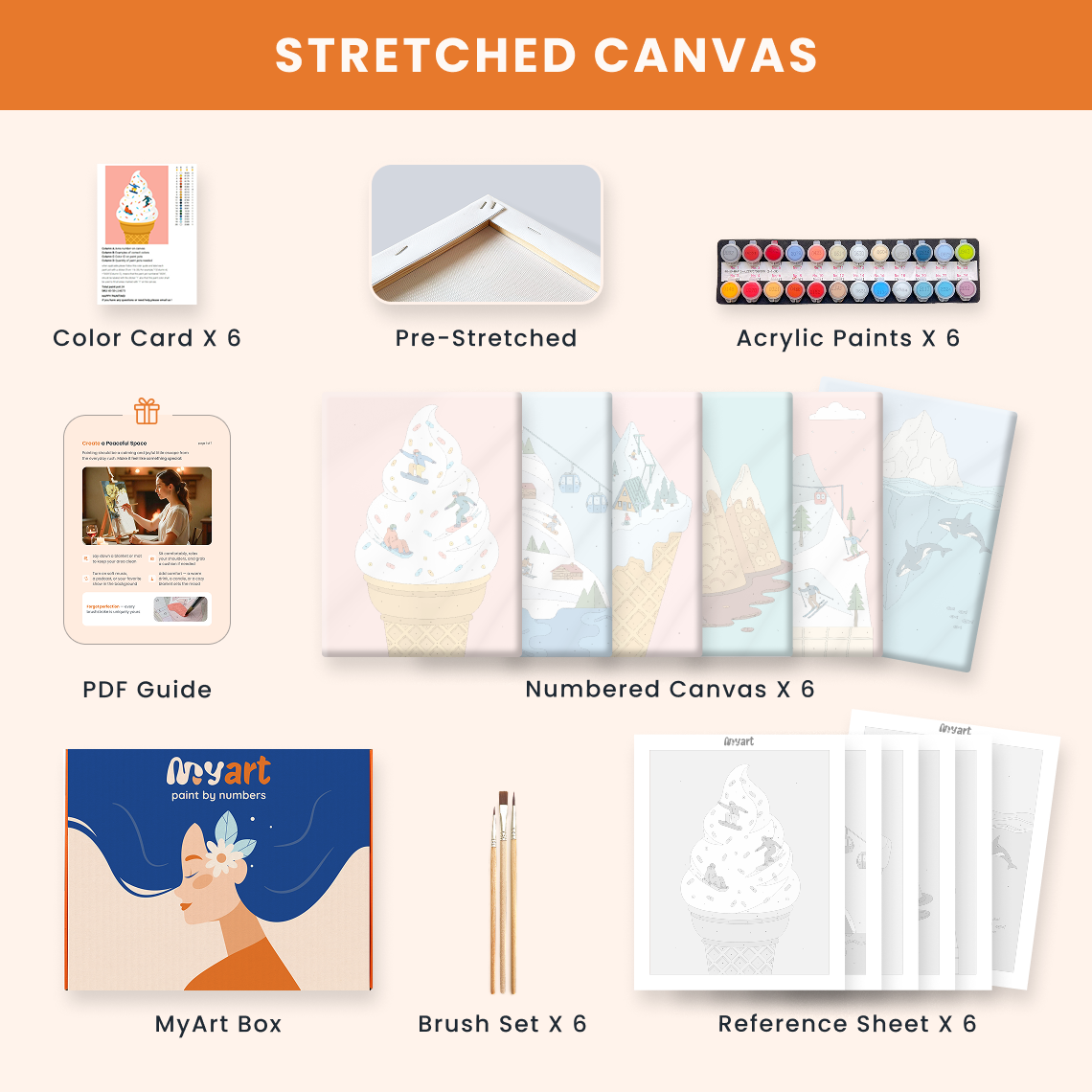 - Premium acrylic paint set (pre-mixed and numbered)