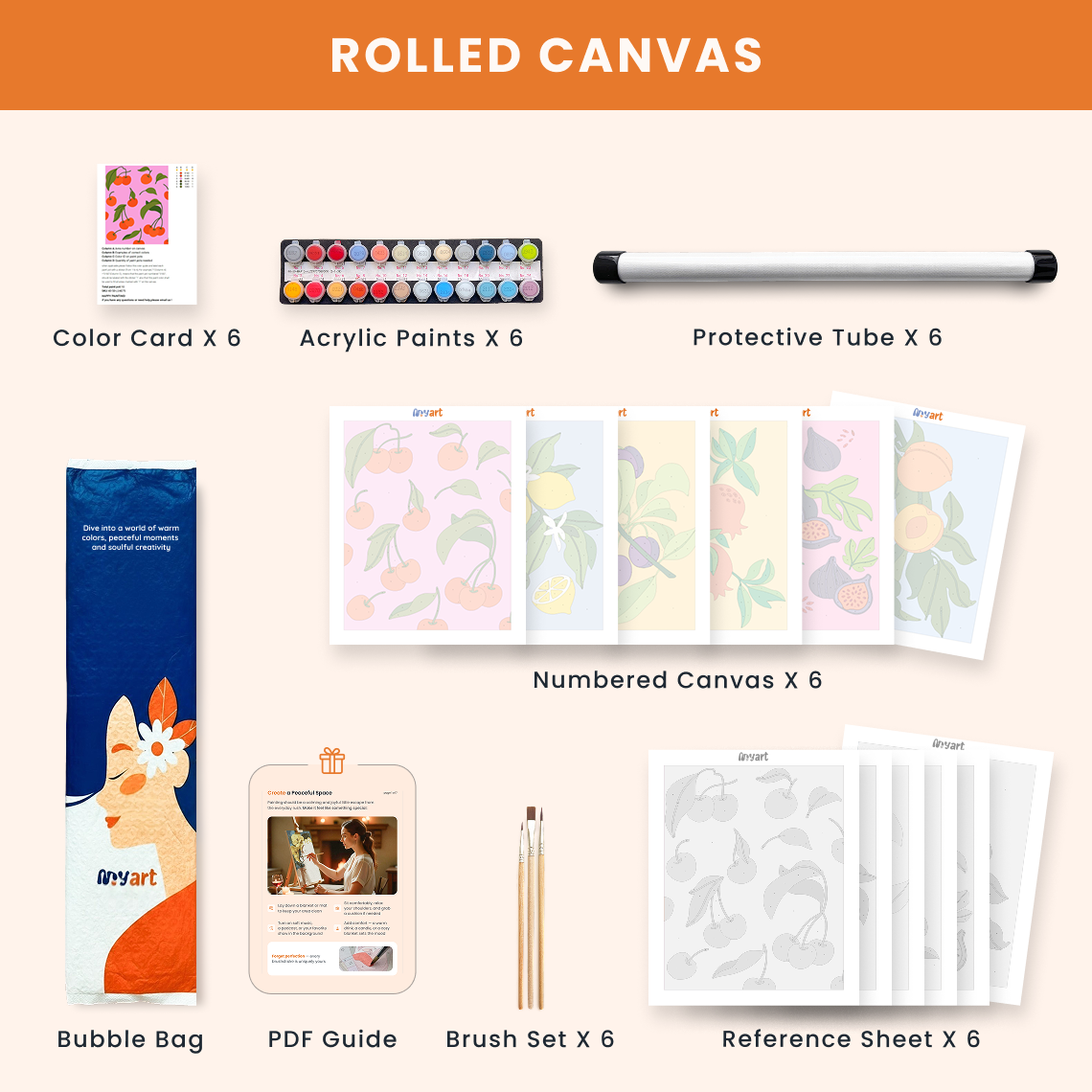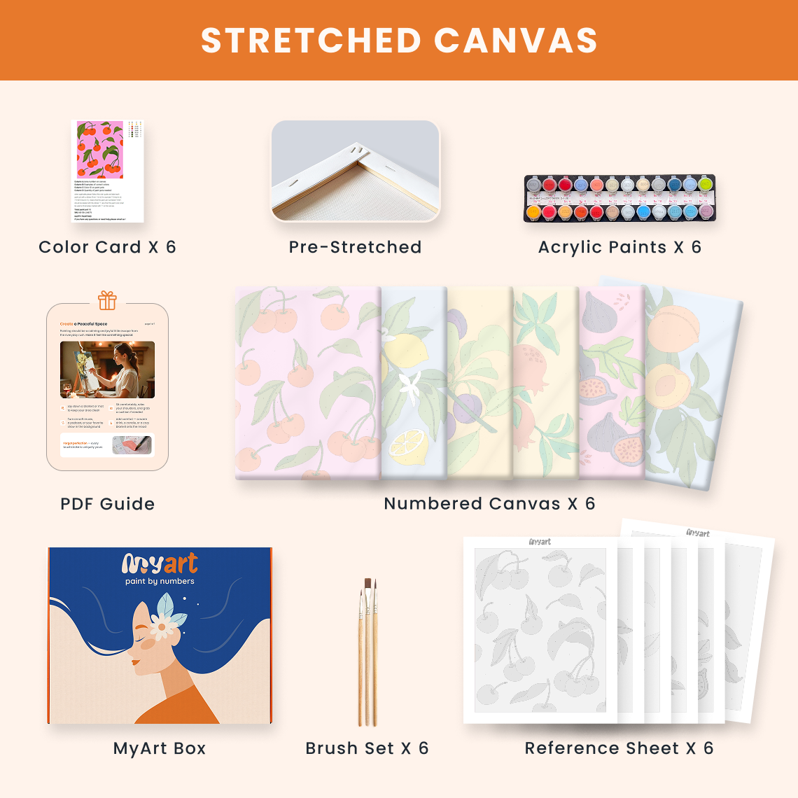 - Premium acrylic paint set (pre-mixed and numbered)