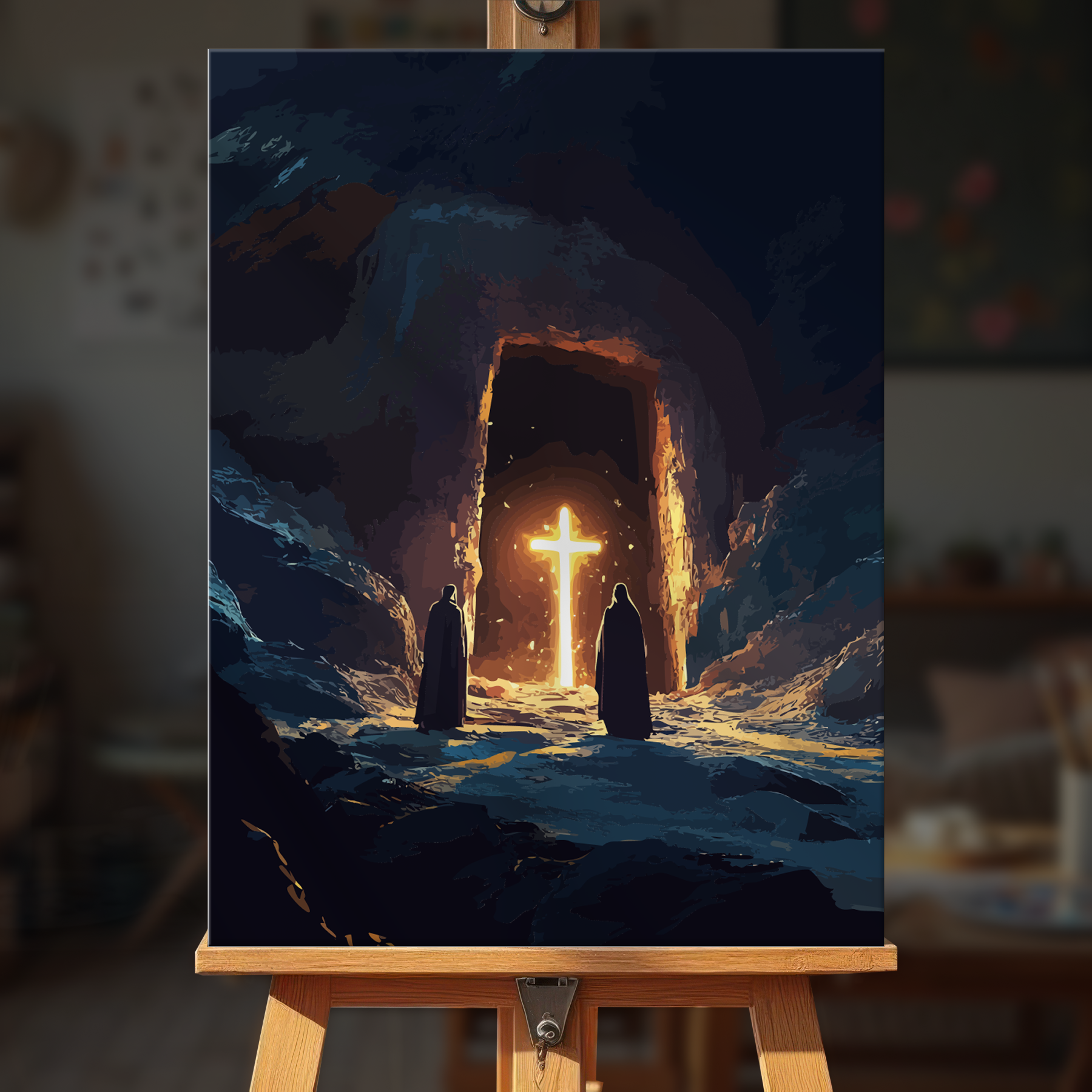 The canvas is pre-stretched on a wooden frame — ready to hang when finished.