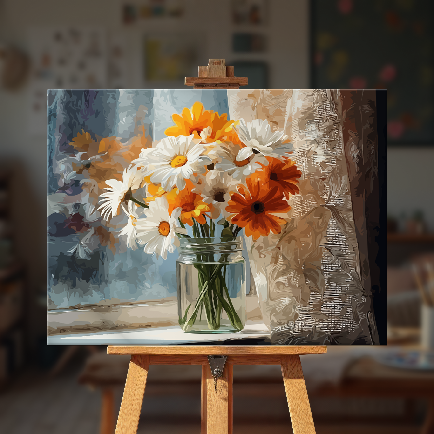 The canvas is pre-stretched on a wooden frame — ready to hang when finished.