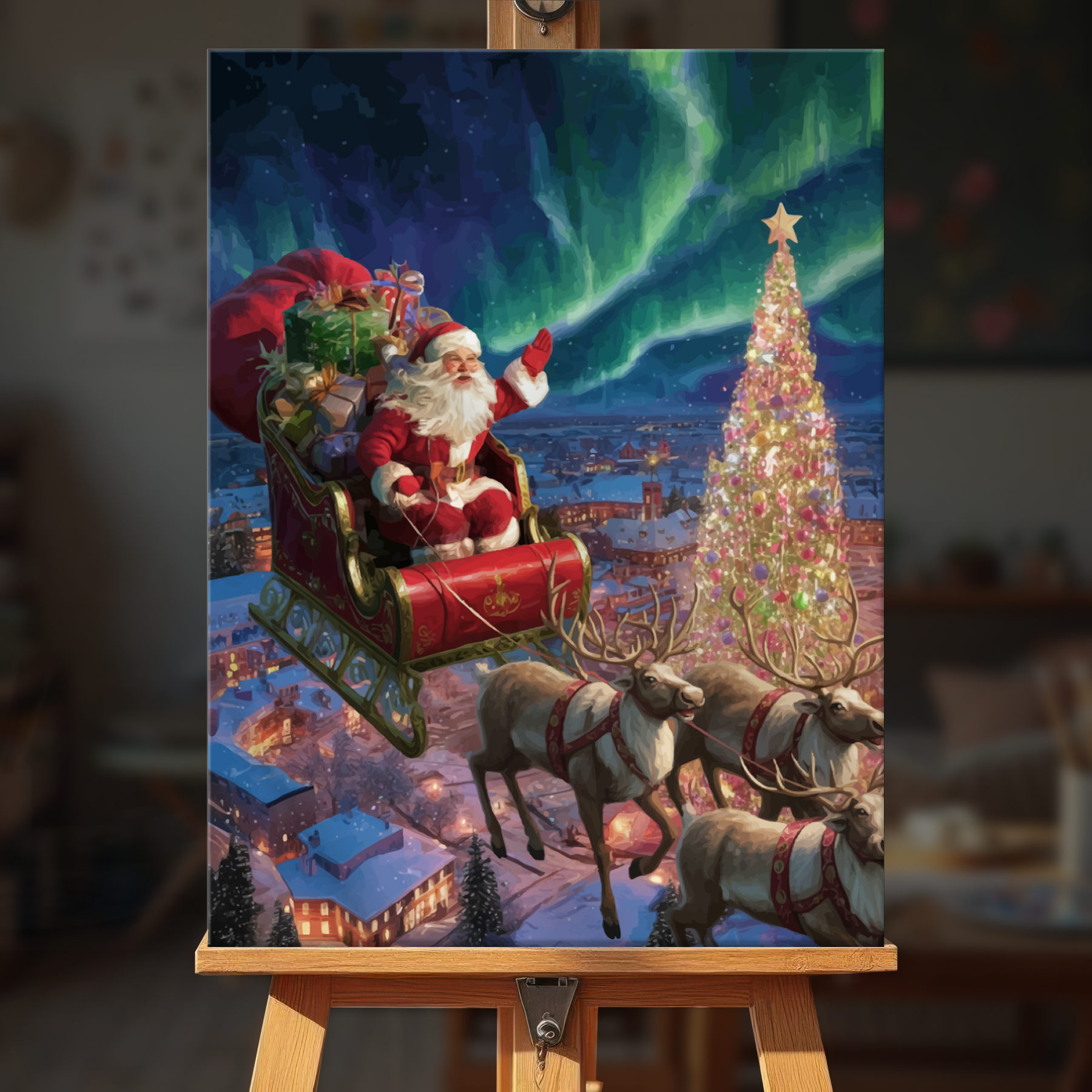 The canvas is pre-stretched on a wooden frame โ ready to hang when finished.