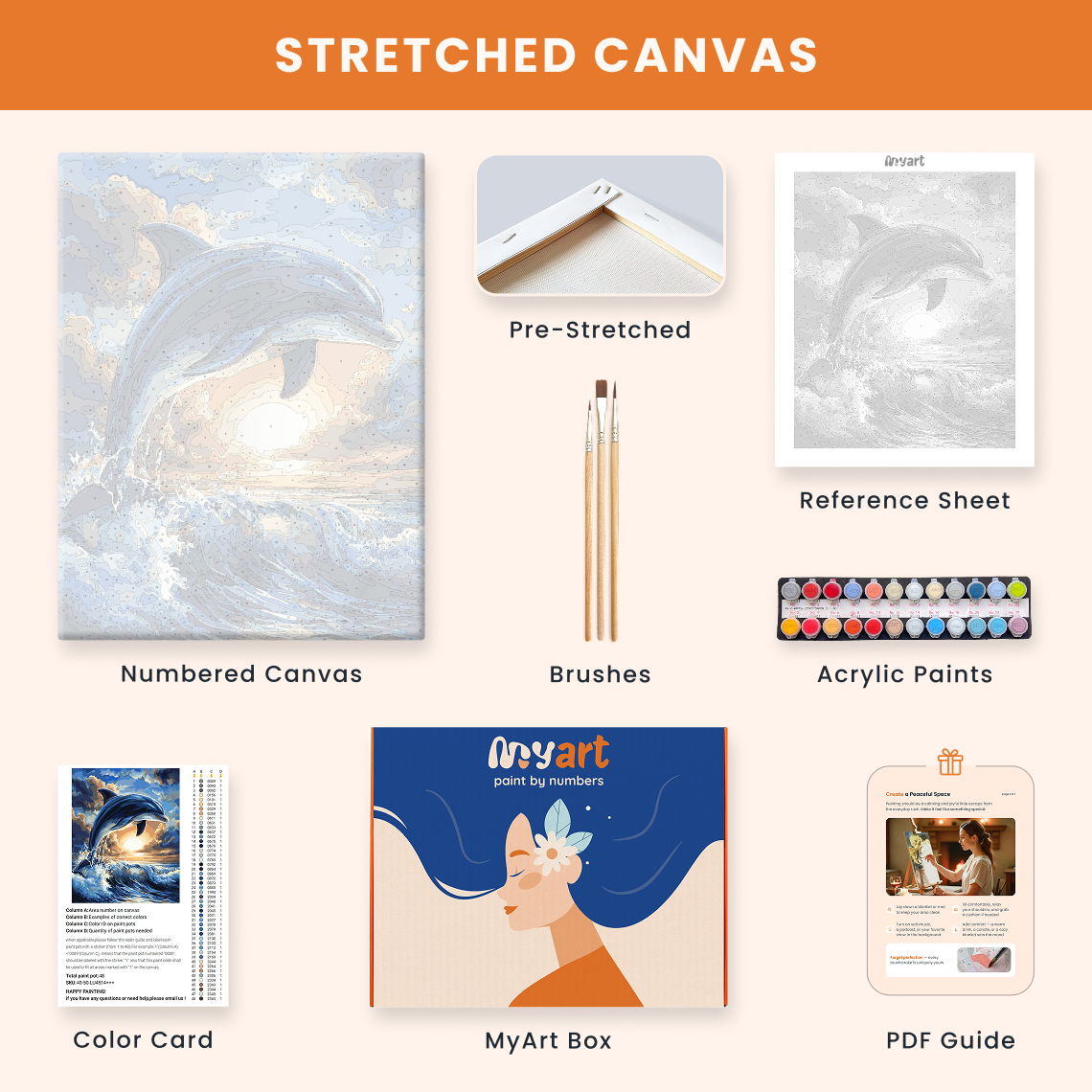 - Premium acrylic paint set (pre-mixed and numbered)
