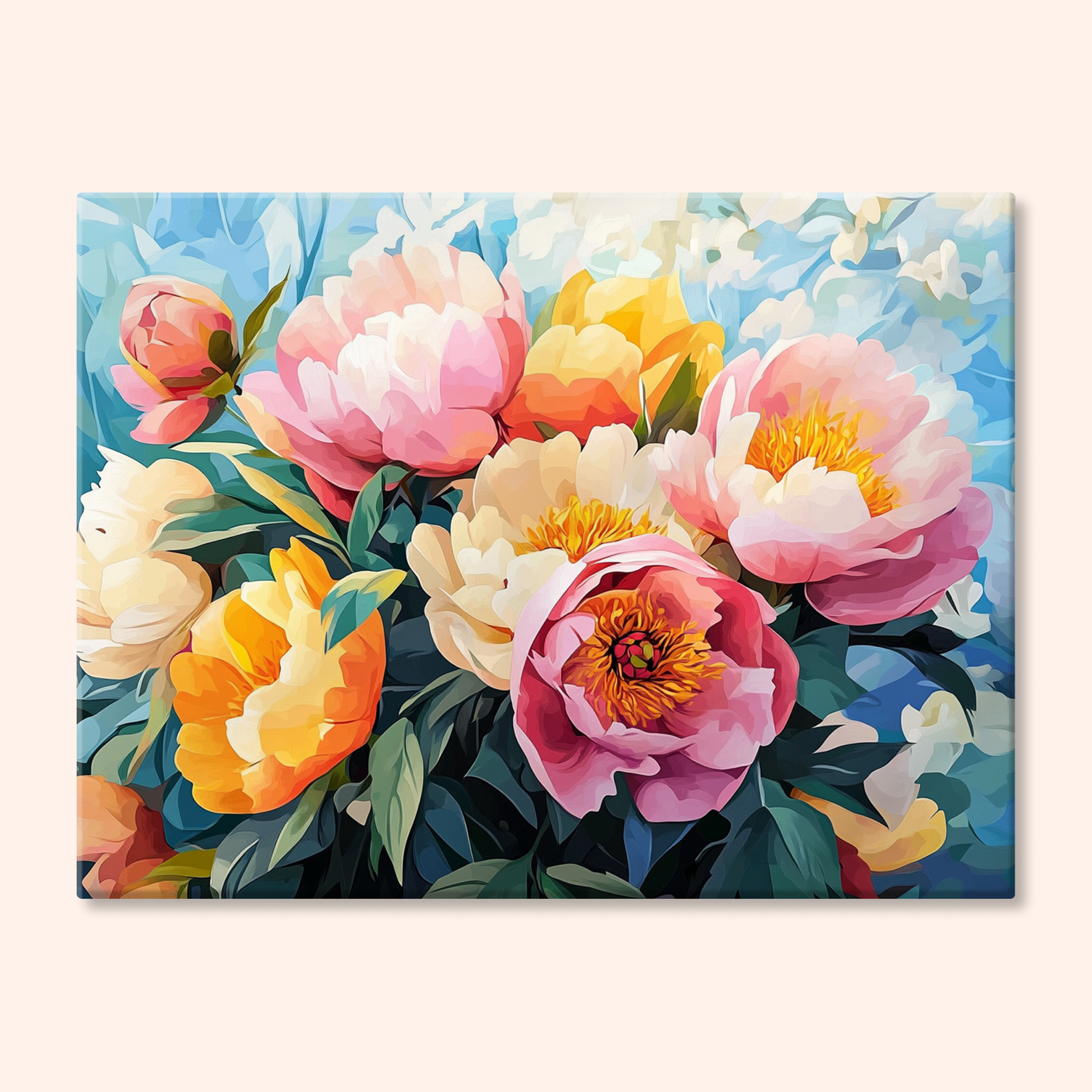 The canvas is pre-stretched on a wooden frame — ready to hang when finished.