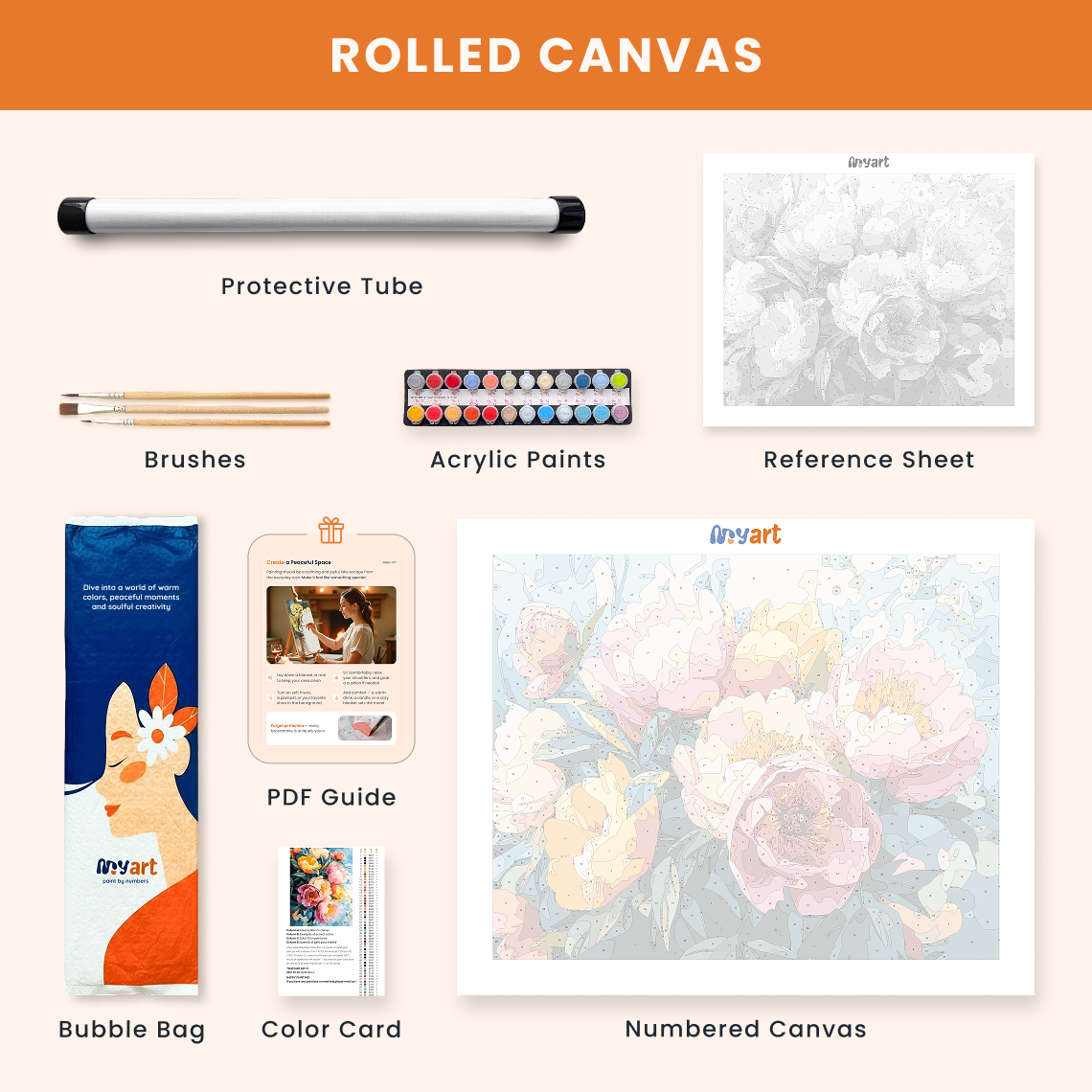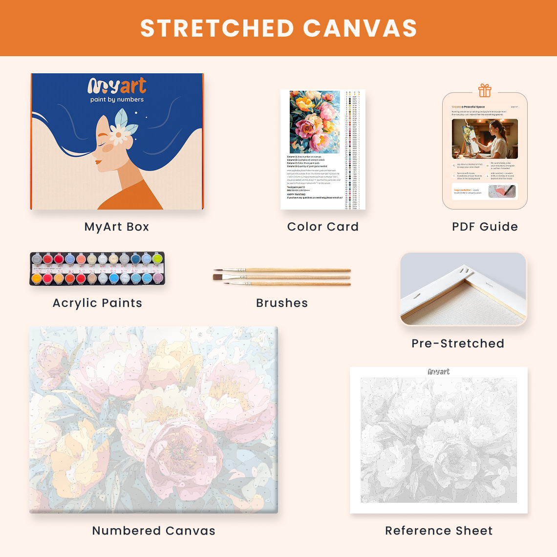 - Premium acrylic paint set (pre-mixed and numbered)