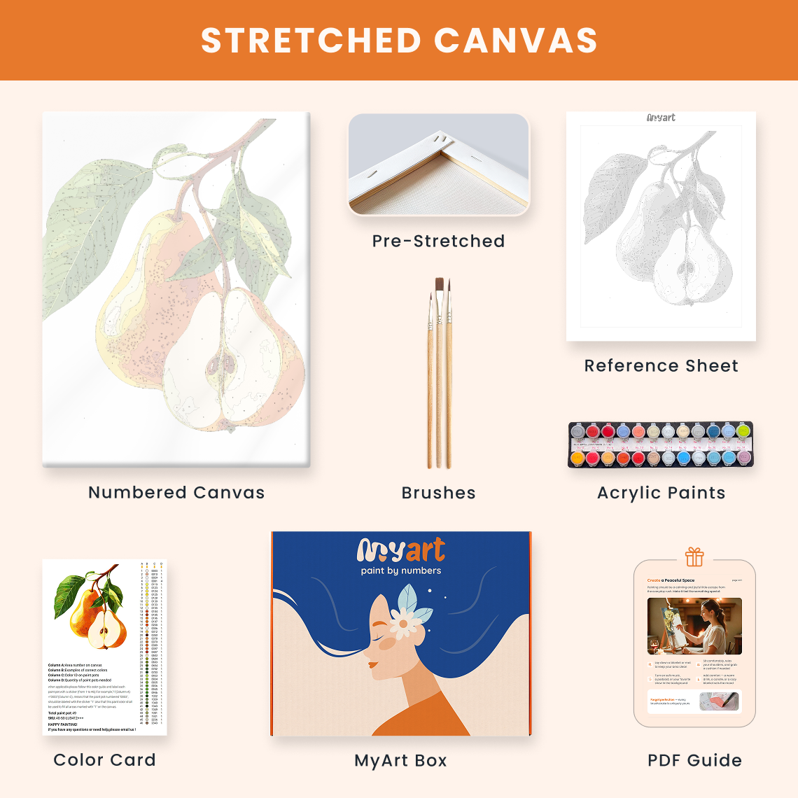 - Premium acrylic paint set (pre-mixed and numbered)