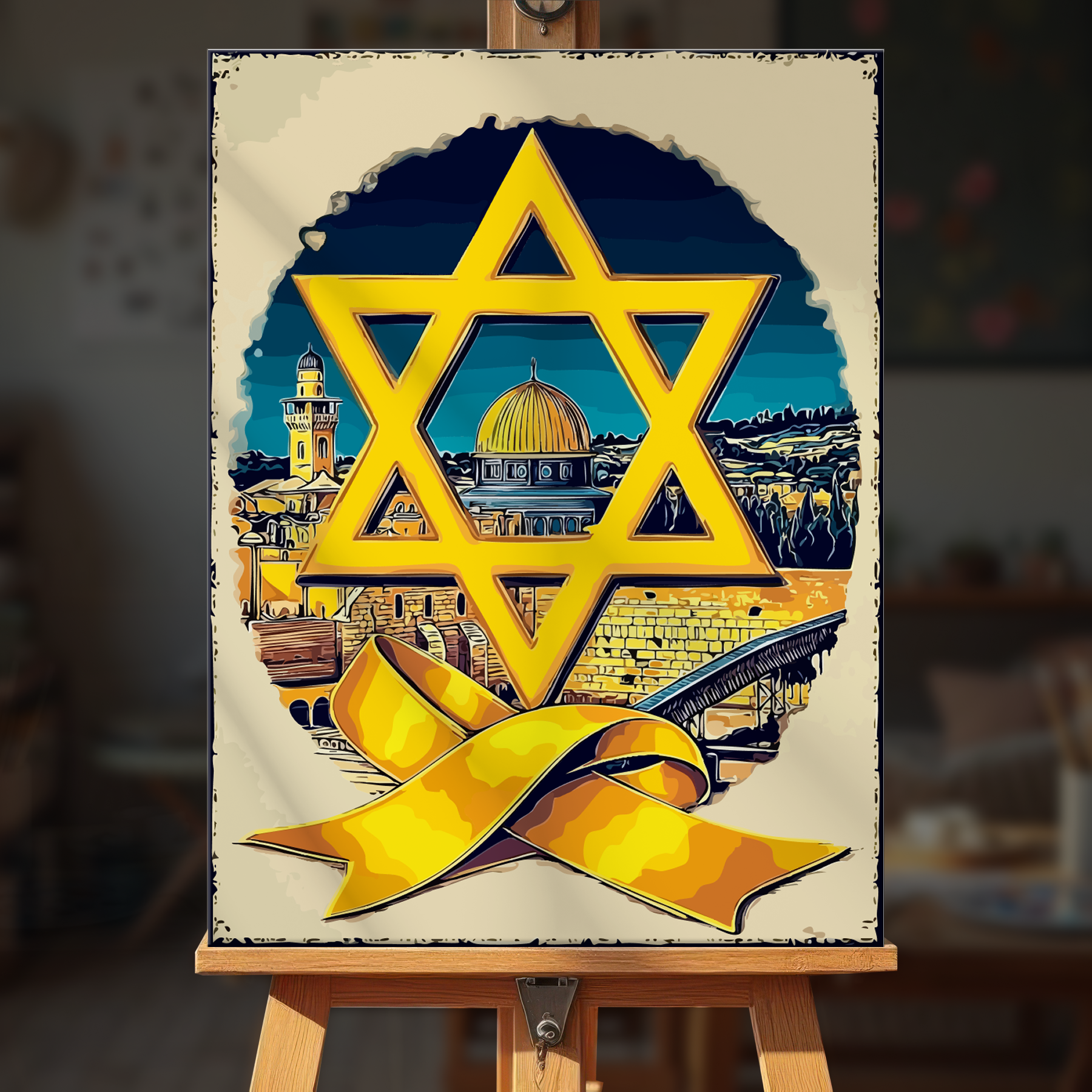 The canvas is pre-stretched on a wooden frame — ready to hang when finished.
