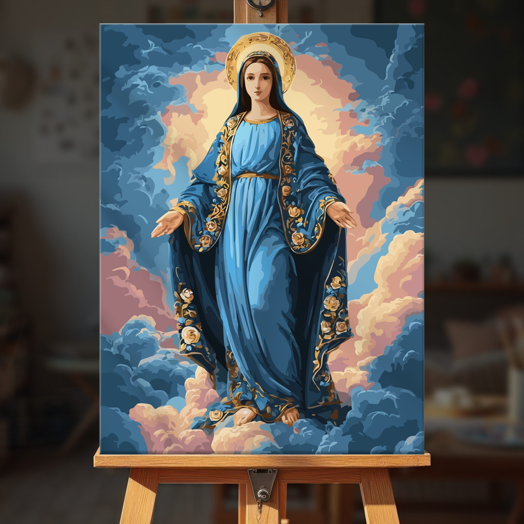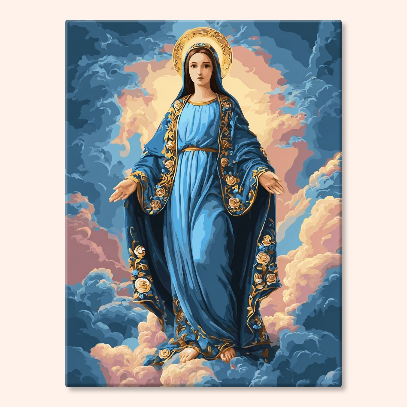 The canvas is pre-stretched on a wooden frame — ready to hang when finished.