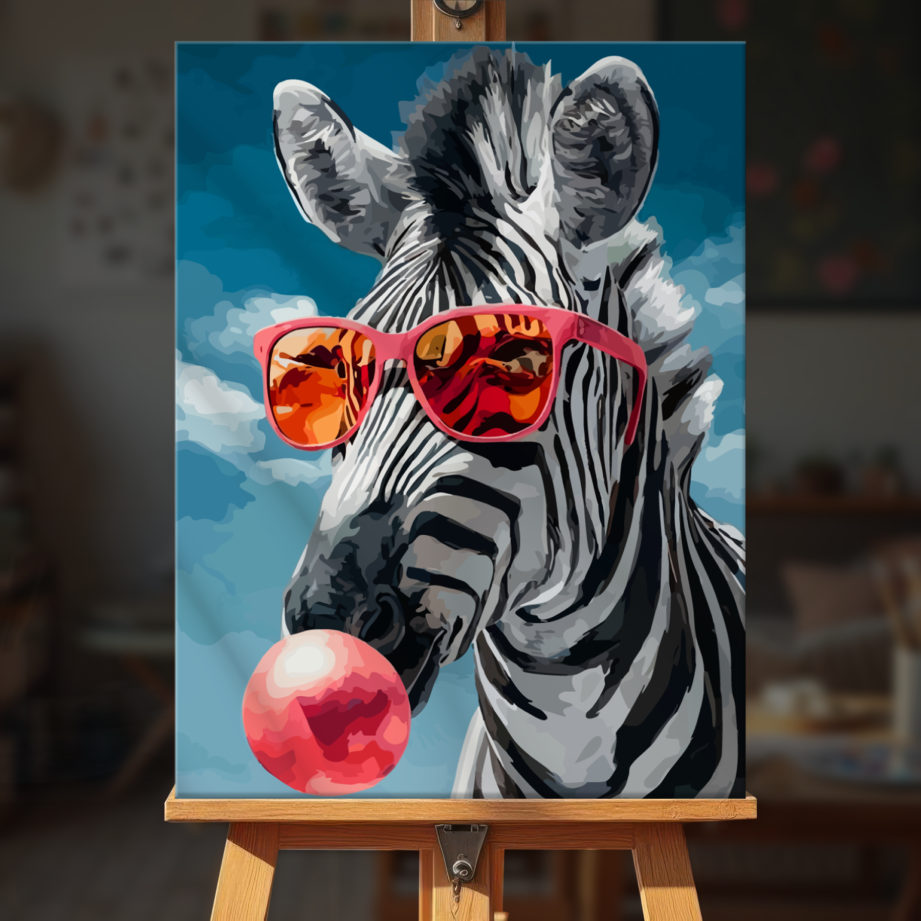 The canvas is pre-stretched on a wooden frame — ready to hang when finished.