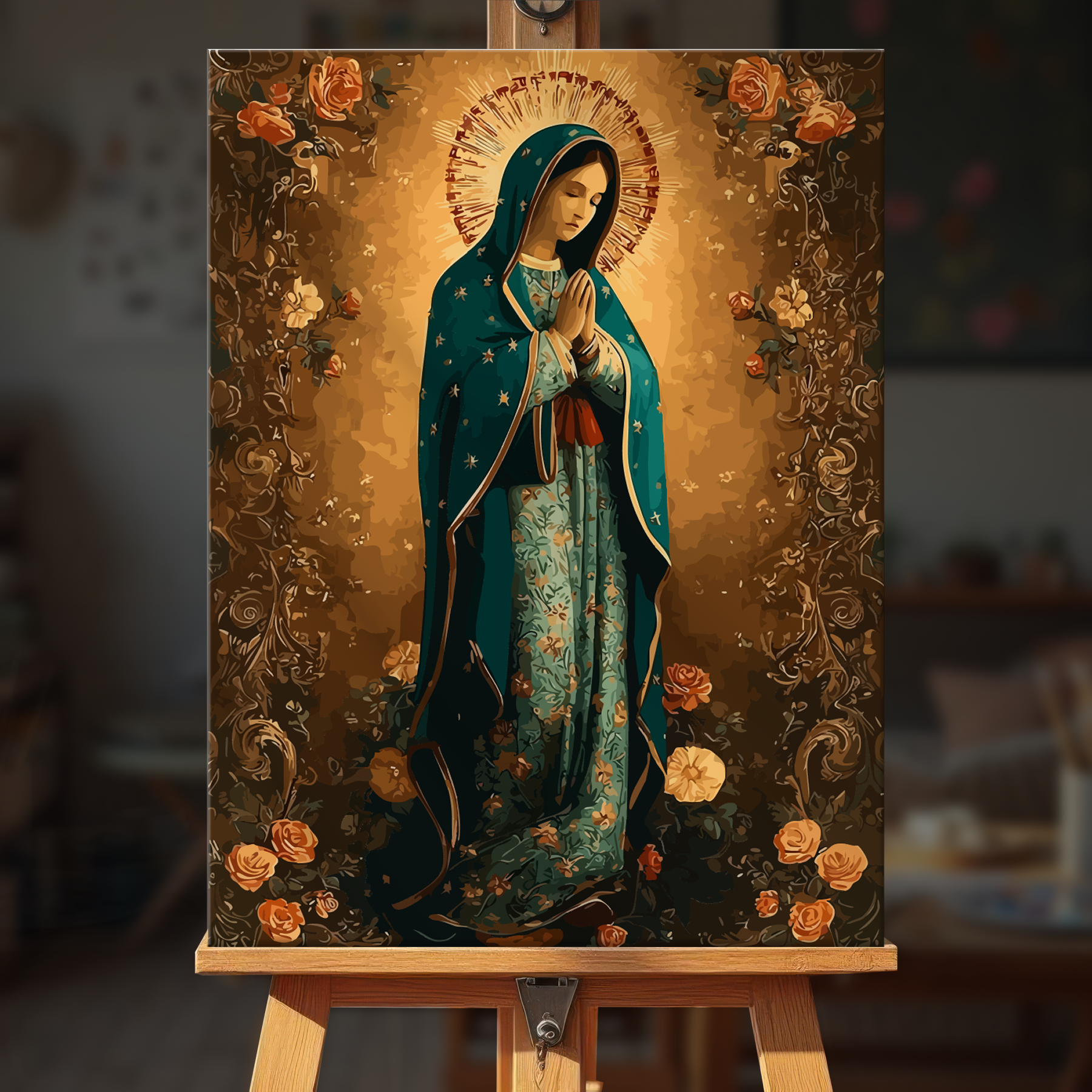 The canvas is pre-stretched on a wooden frame — ready to hang when finished.