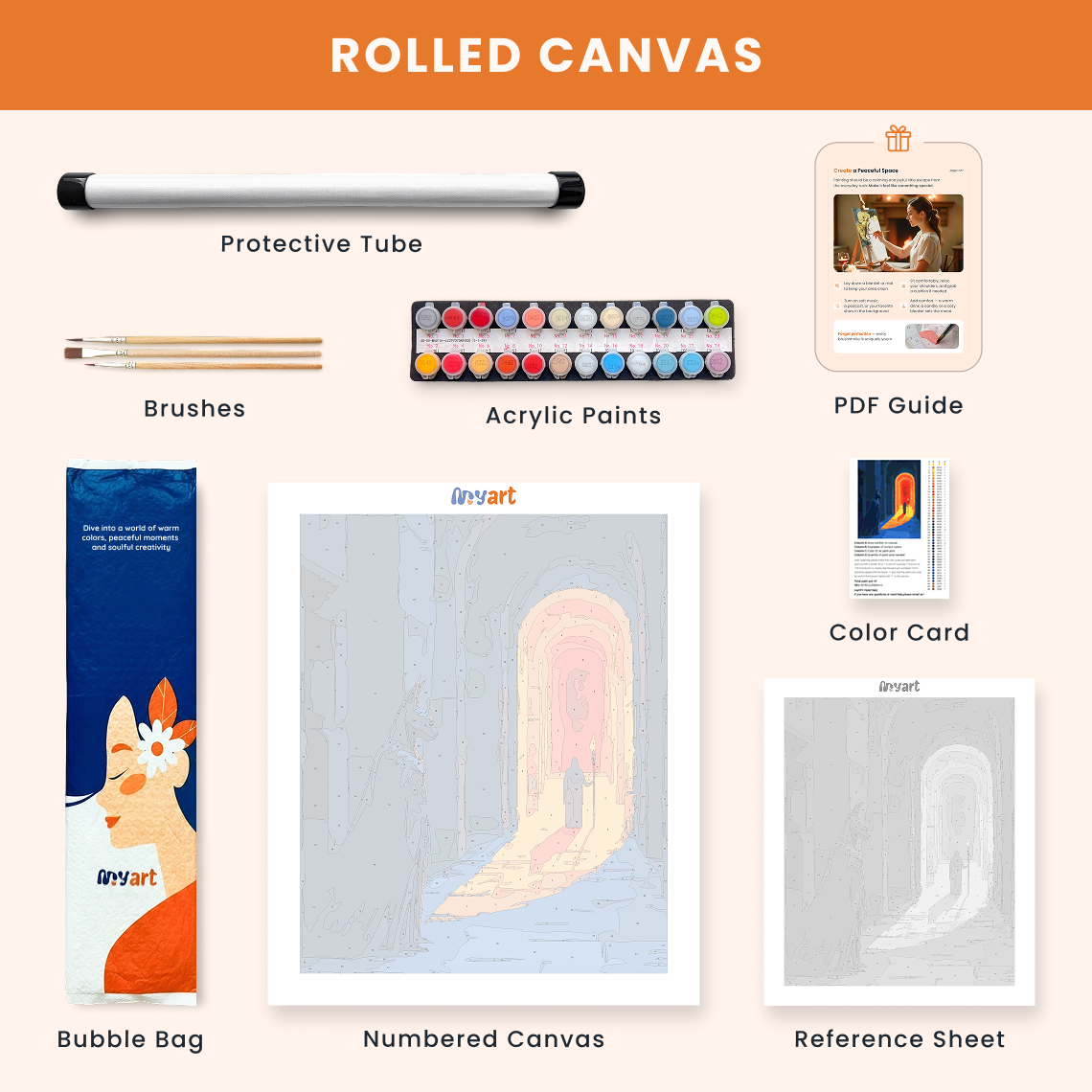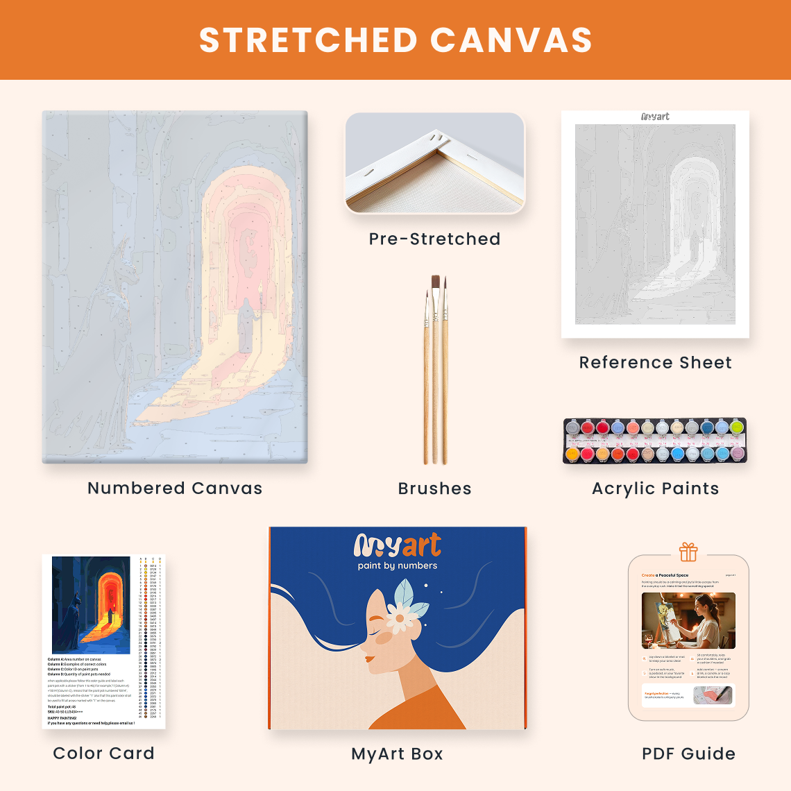 - Premium acrylic paint set (pre-mixed and numbered)