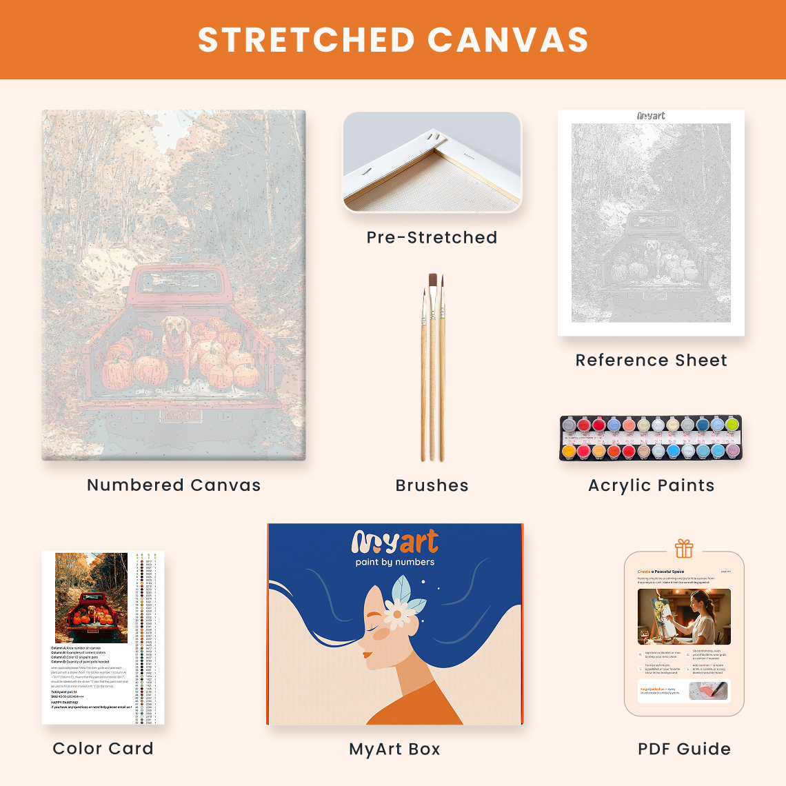 The canvas is pre-stretched on a wooden frame — ready to hang when finished.