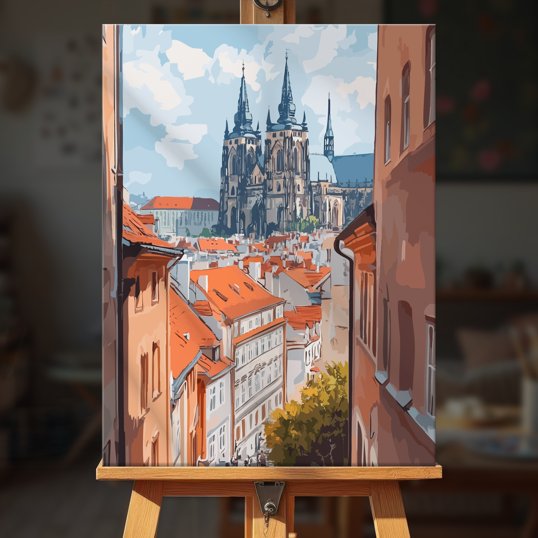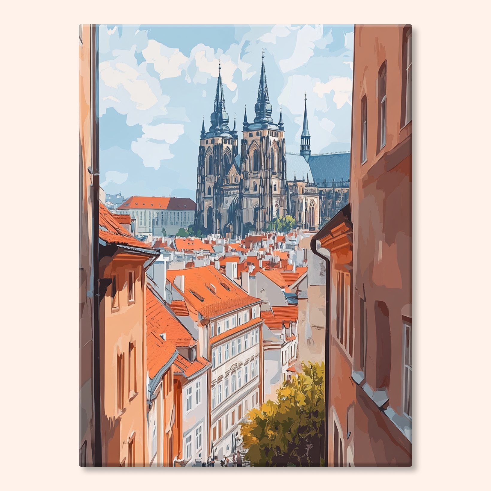 The canvas is pre-stretched on a wooden frame — ready to hang when finished.