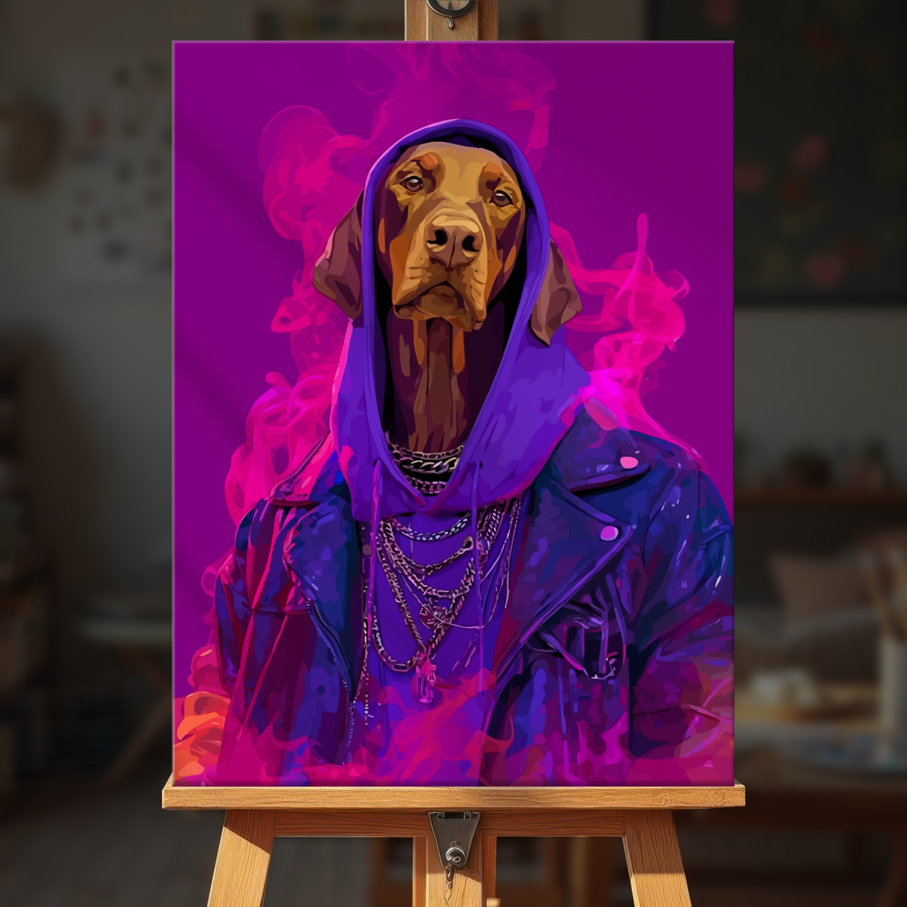 The canvas is pre-stretched on a wooden frame — ready to hang when finished.