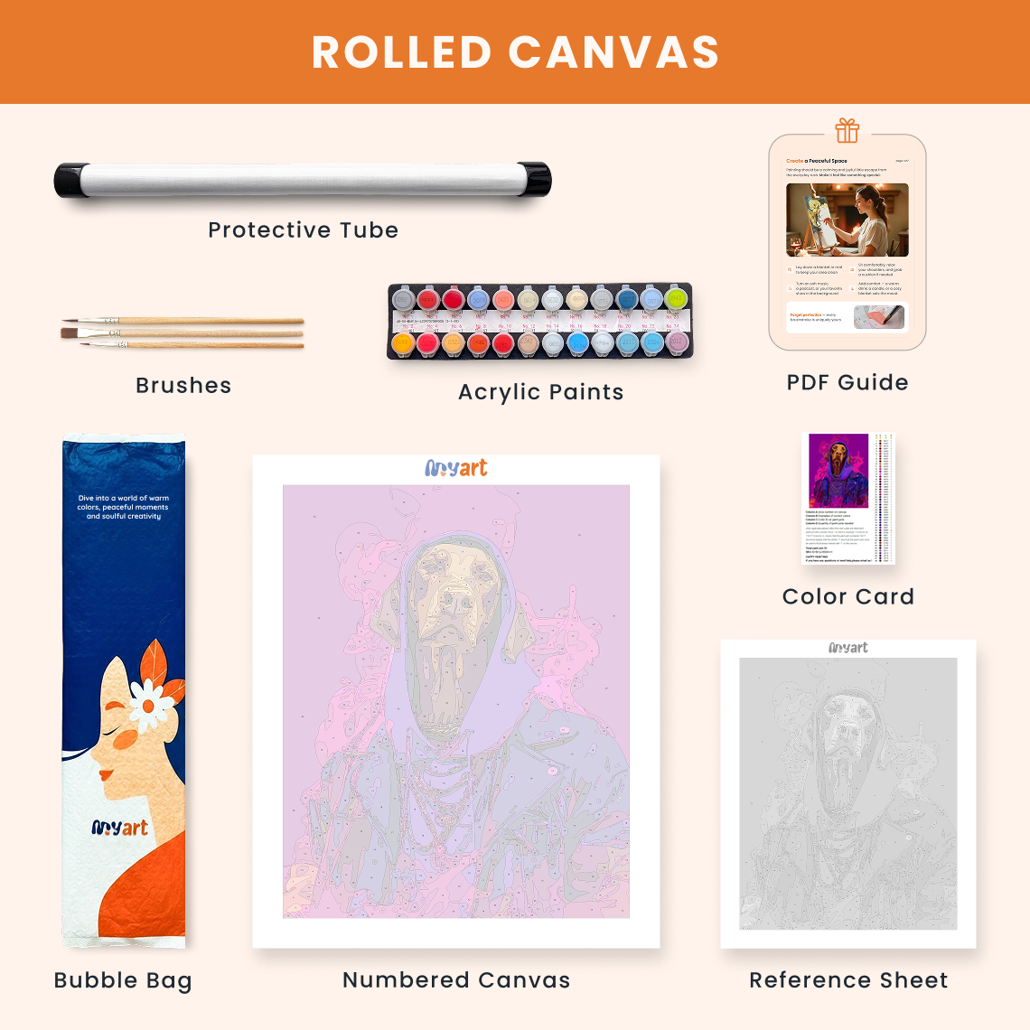 - Premium acrylic paint set (pre-mixed and numbered)