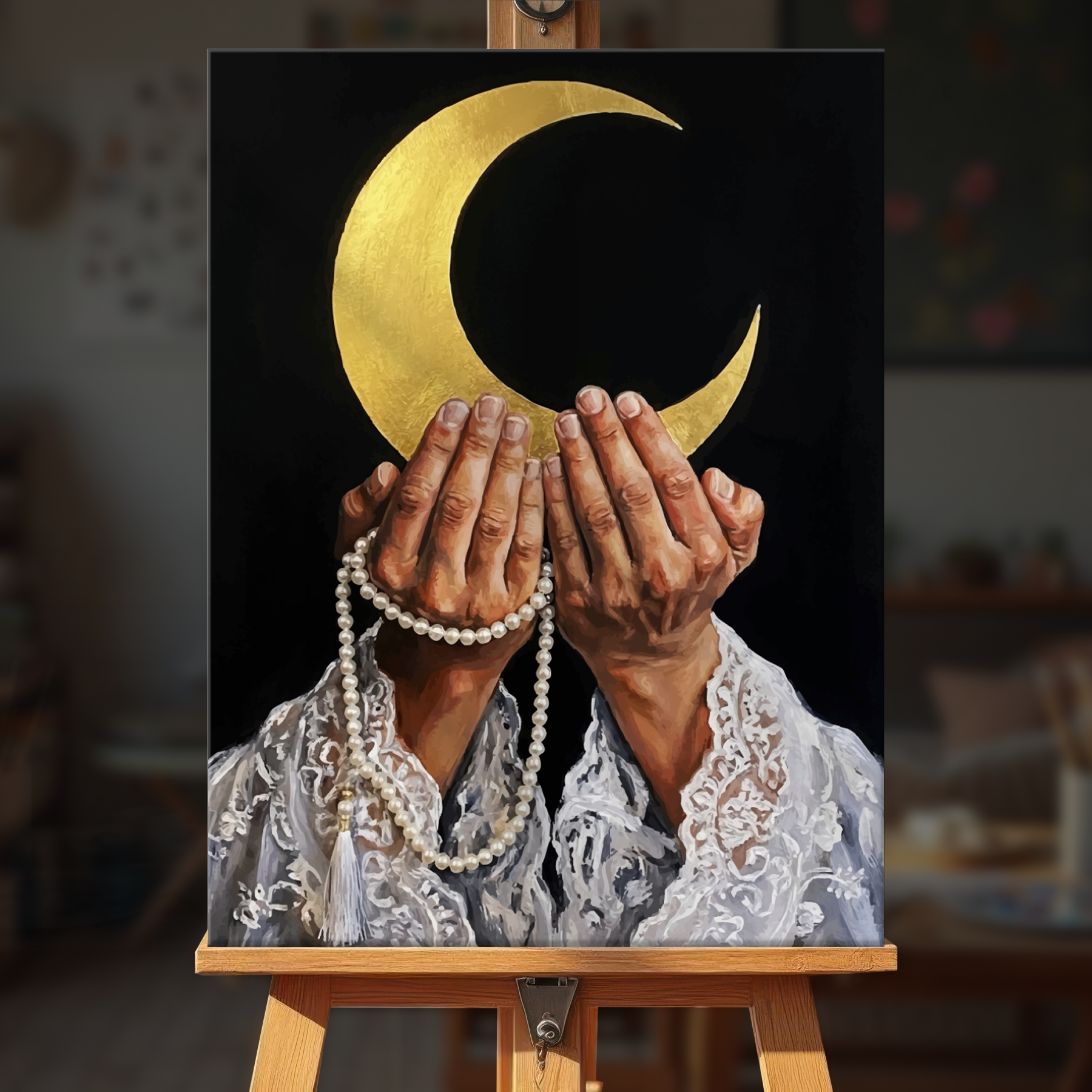 The canvas is pre-stretched on a wooden frame — ready to hang when finished.