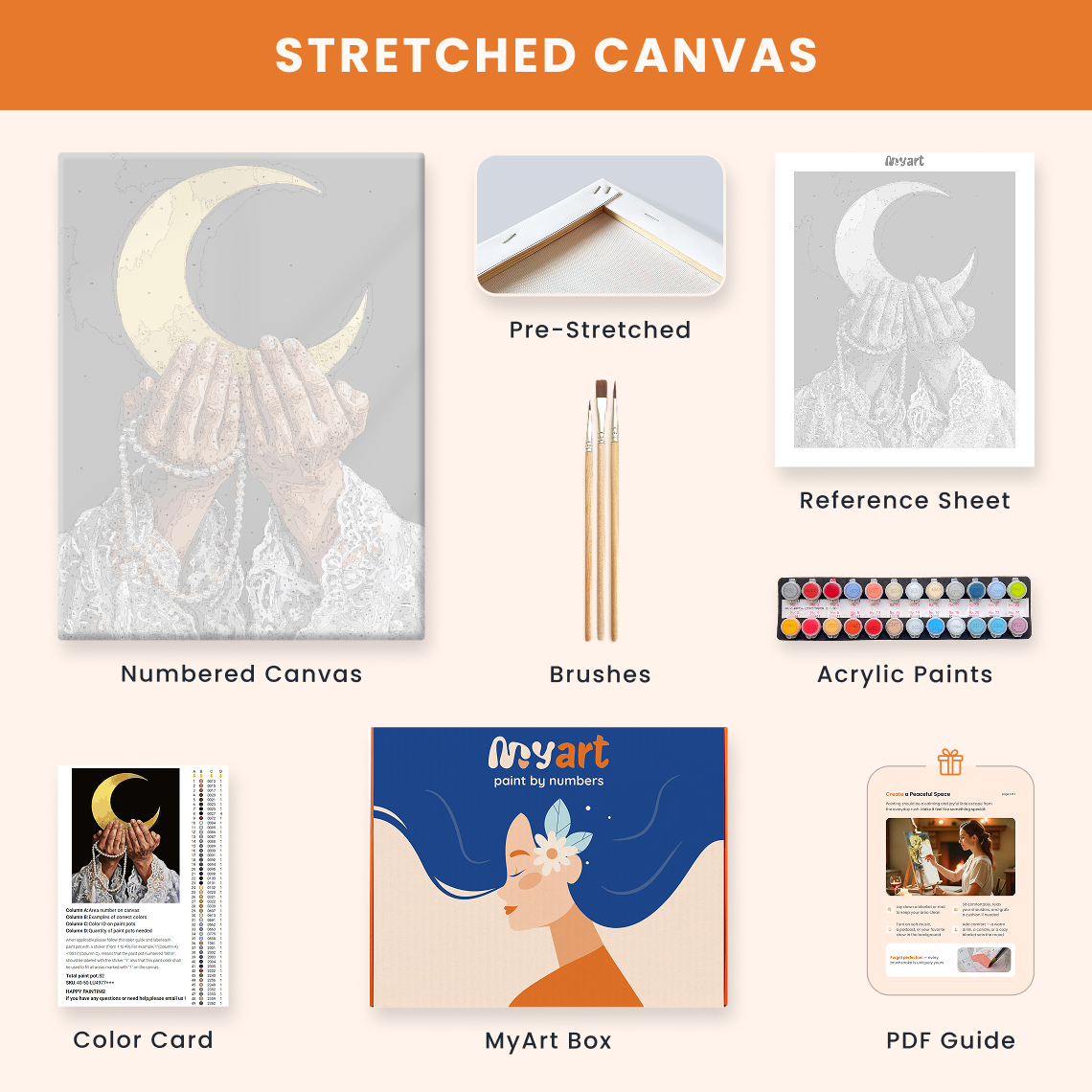 - Premium acrylic paint set (pre-mixed and numbered)