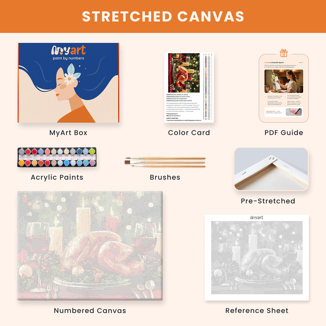 The canvas is pre-stretched on a wooden frame — ready to hang when finished.