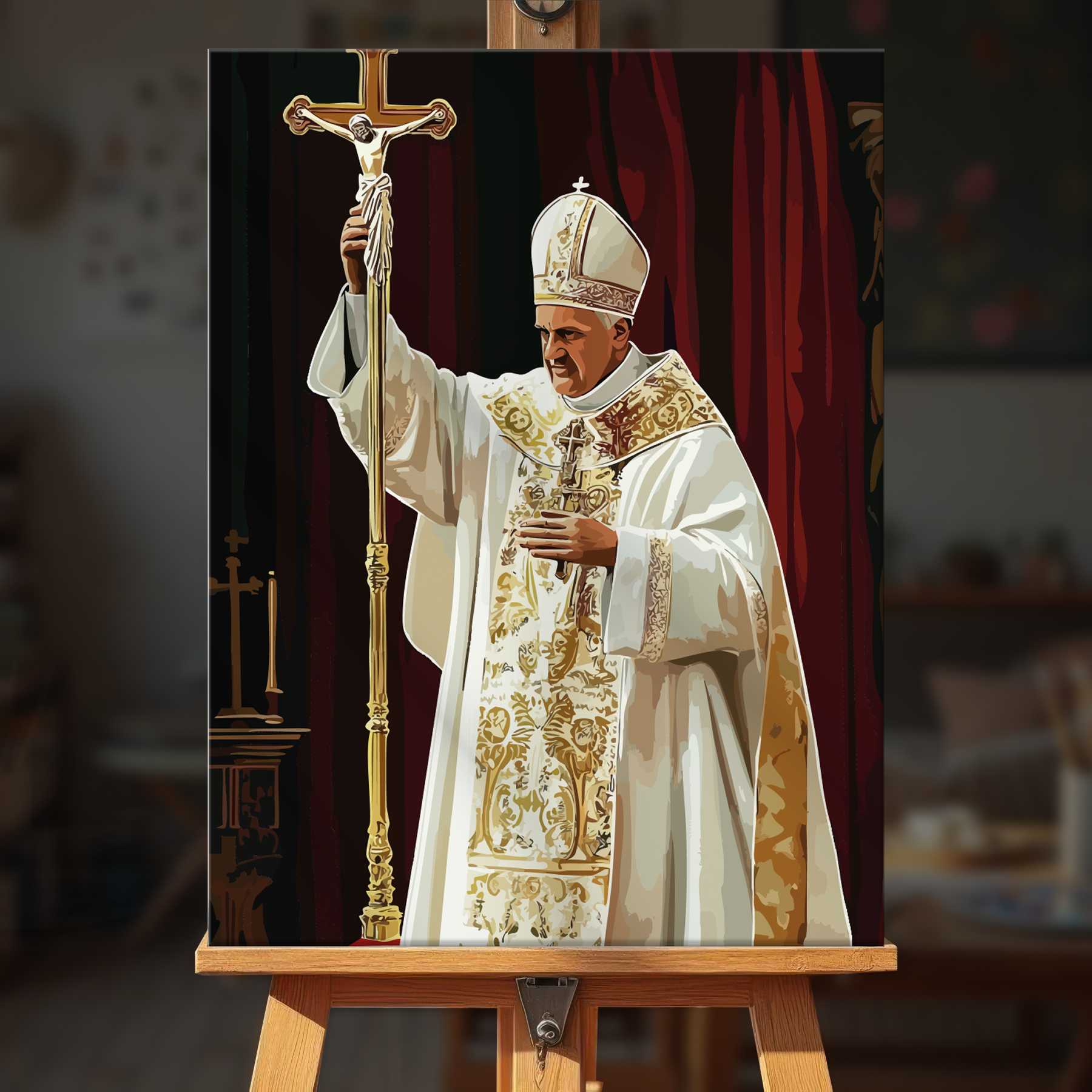The canvas is pre-stretched on a wooden frame — ready to hang when finished.