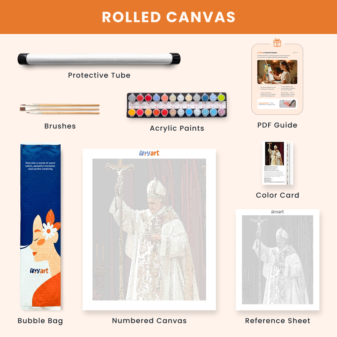 - Premium acrylic paint set (pre-mixed and numbered)