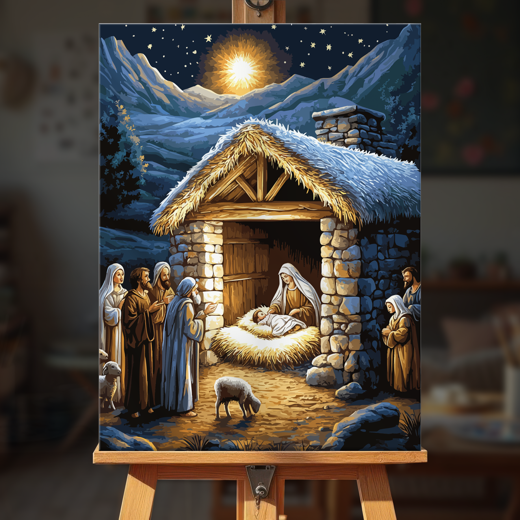 The canvas is pre-stretched on a wooden frame — ready to hang when finished.