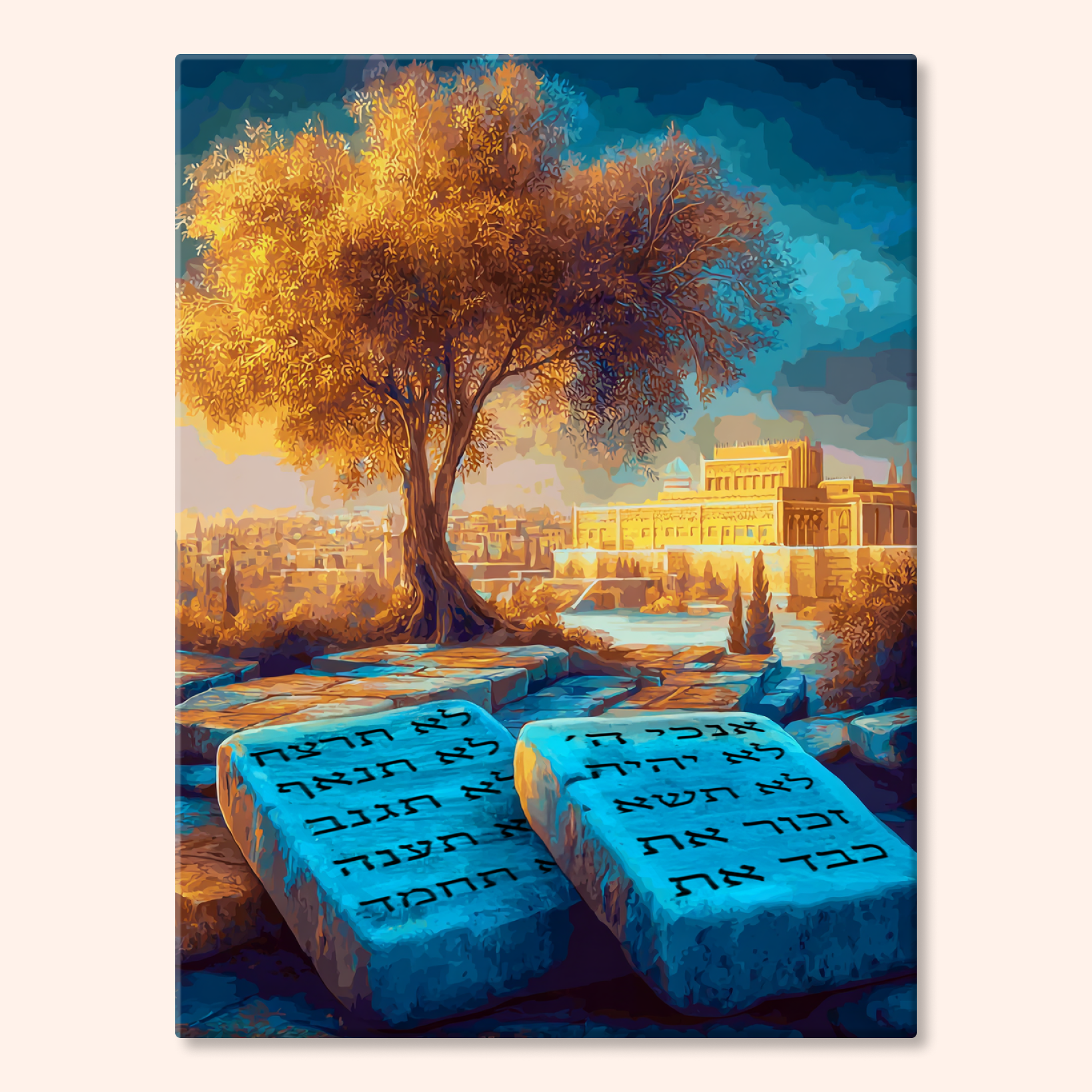 The canvas is pre-stretched on a wooden frame — ready to hang when finished.