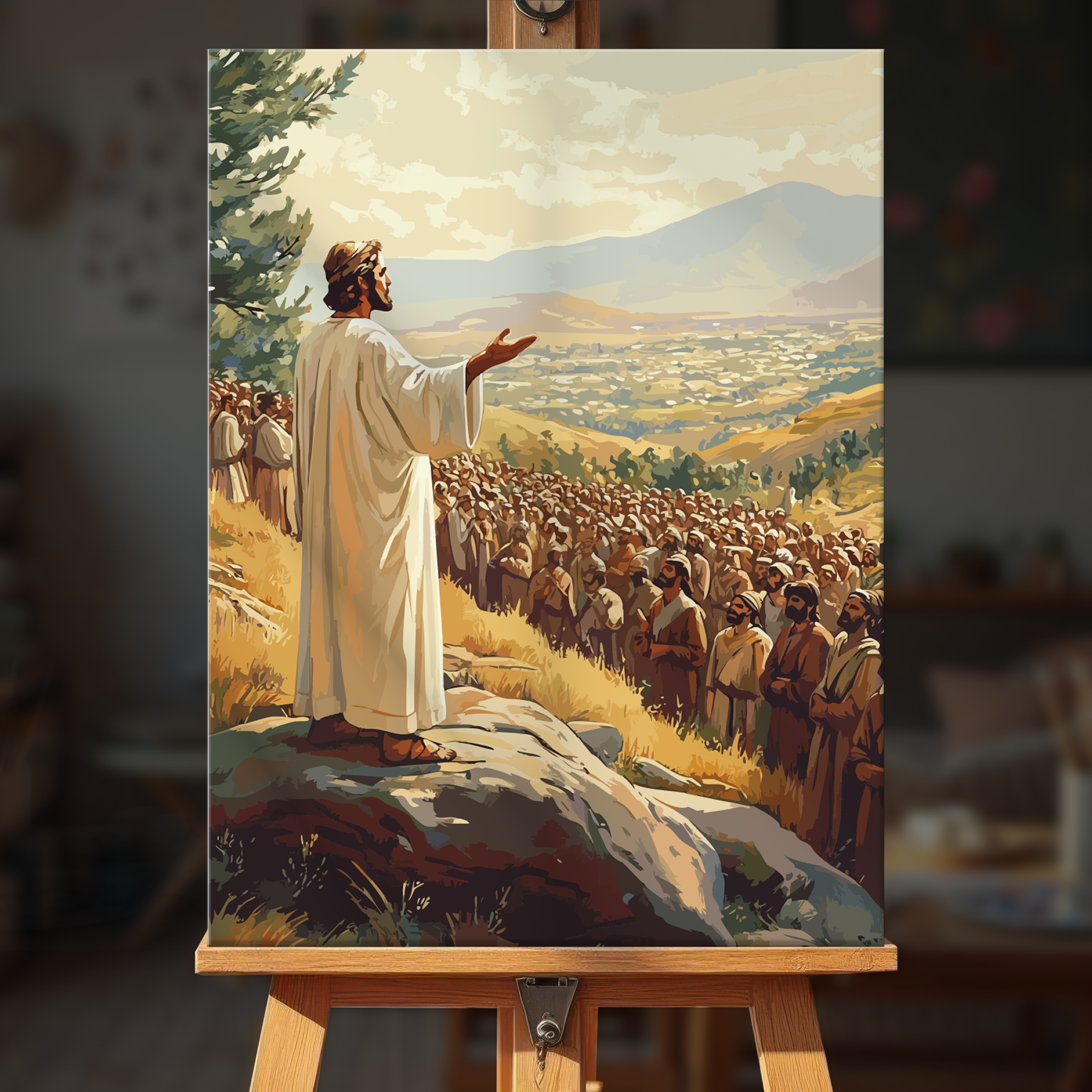 The canvas is pre-stretched on a wooden frame — ready to hang when finished.