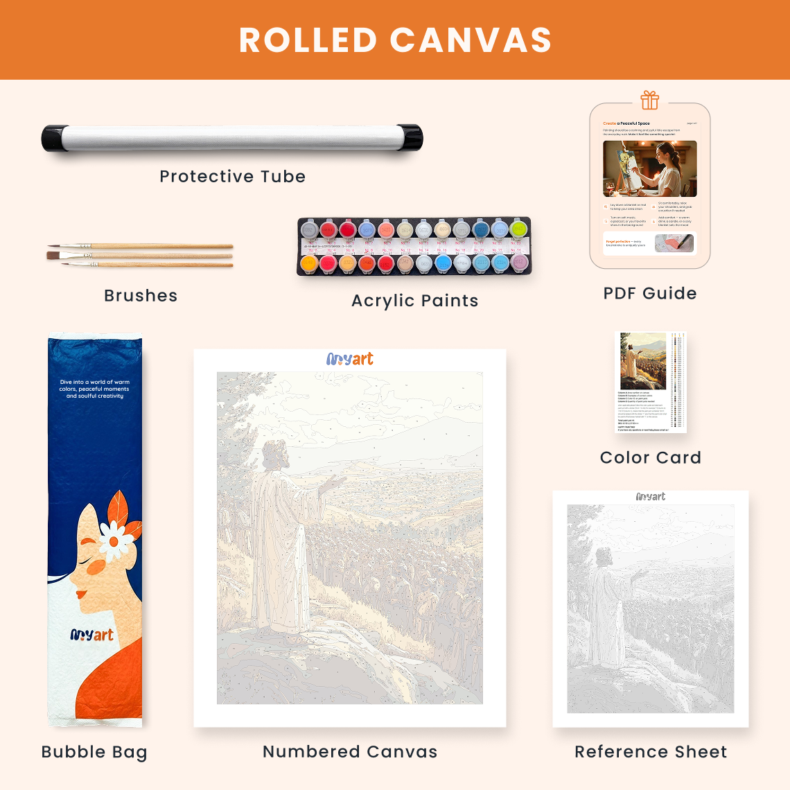 - Premium acrylic paint set (pre-mixed and numbered)