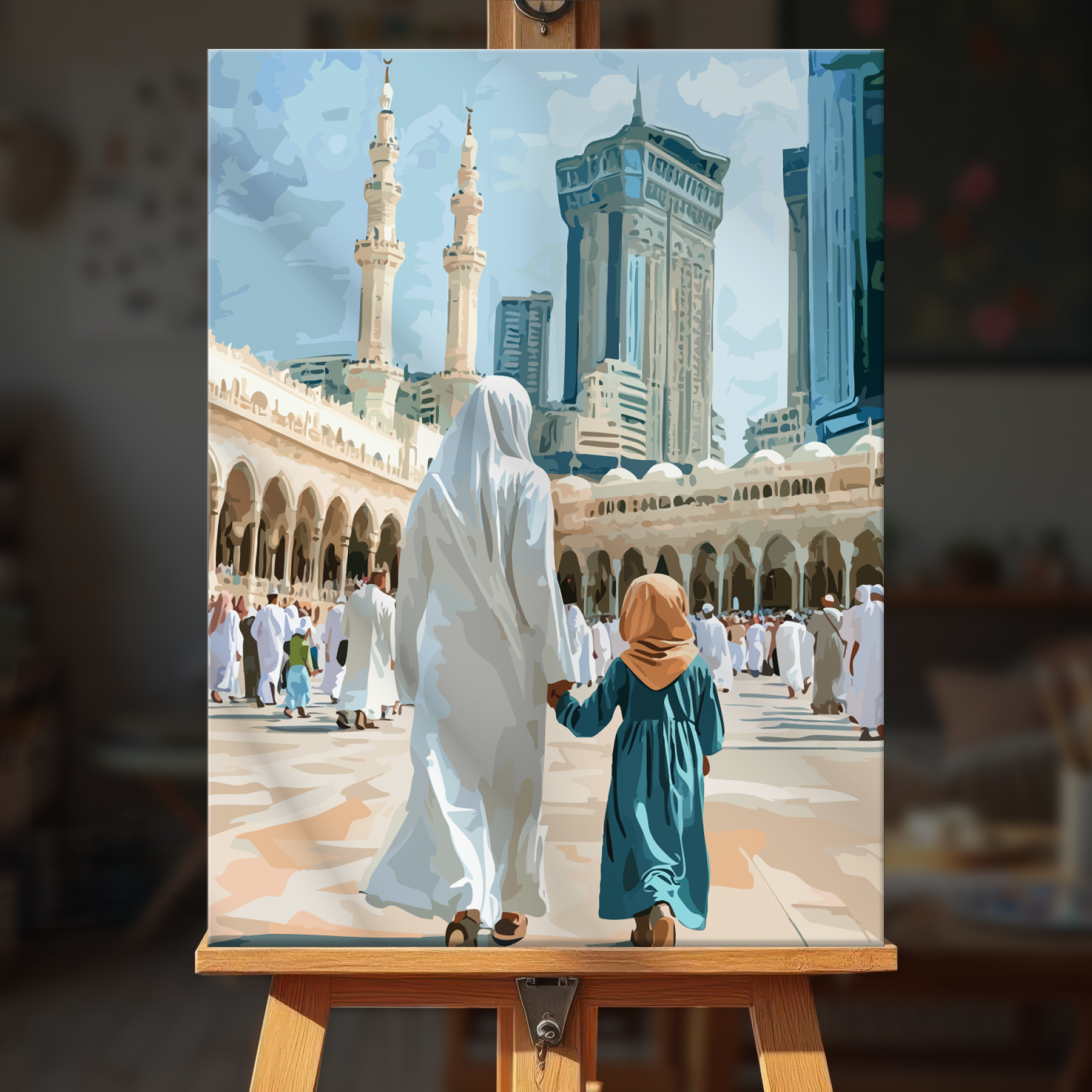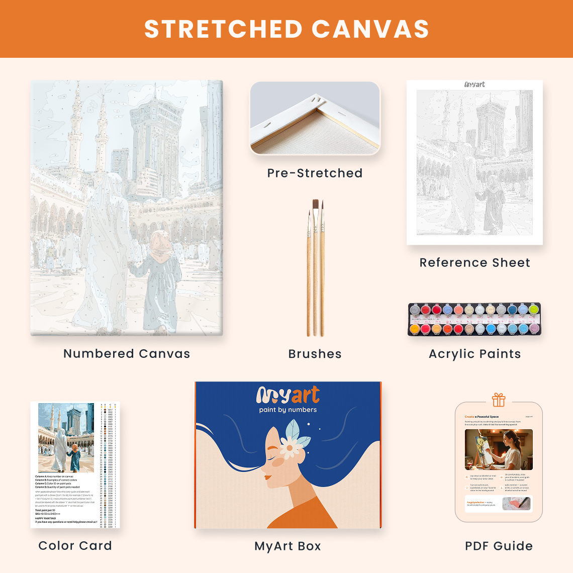The canvas is pre-stretched on a wooden frame — ready to hang when finished.