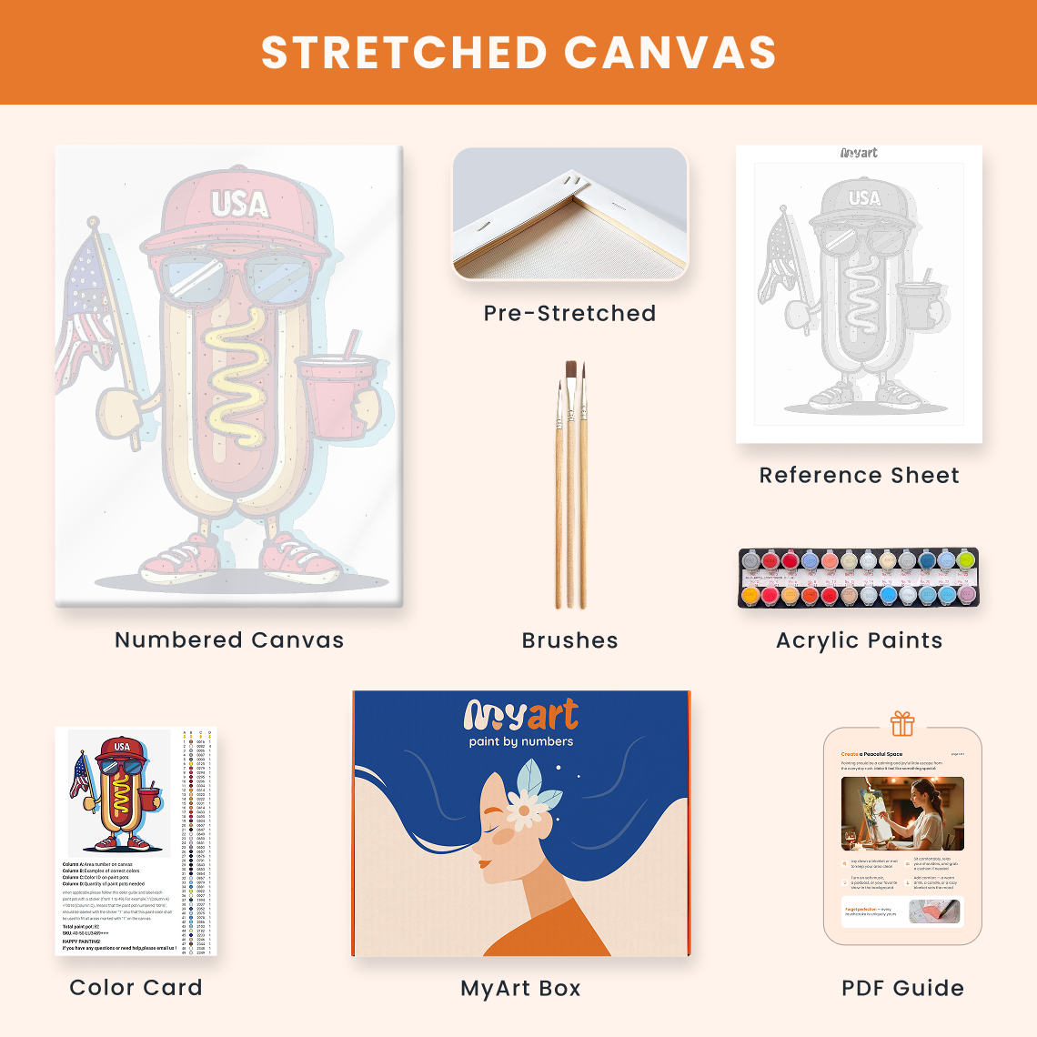 - Premium acrylic paint set (pre-mixed and numbered)
