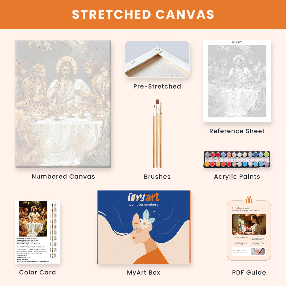- Premium acrylic paint set (pre-mixed and numbered)