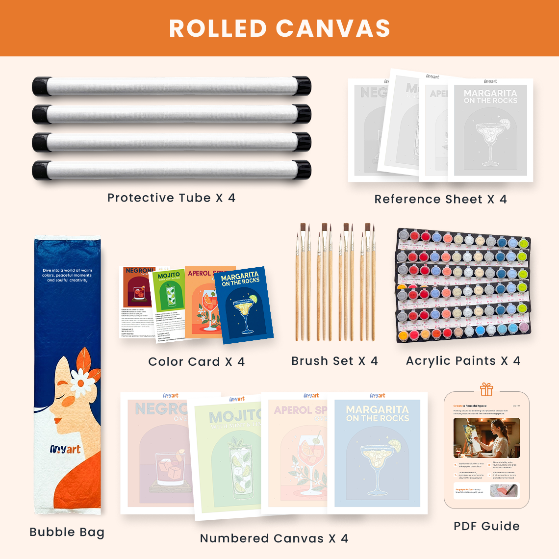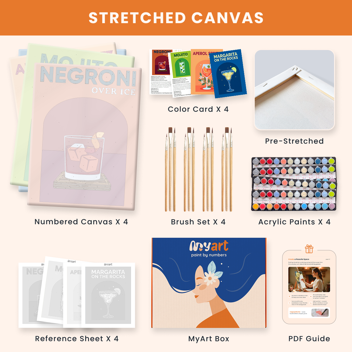 - Premium acrylic paint set (pre-mixed and numbered)