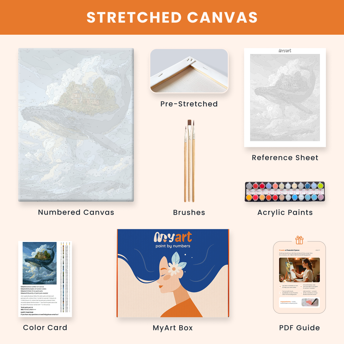 - Premium acrylic paint set (pre-mixed and numbered)