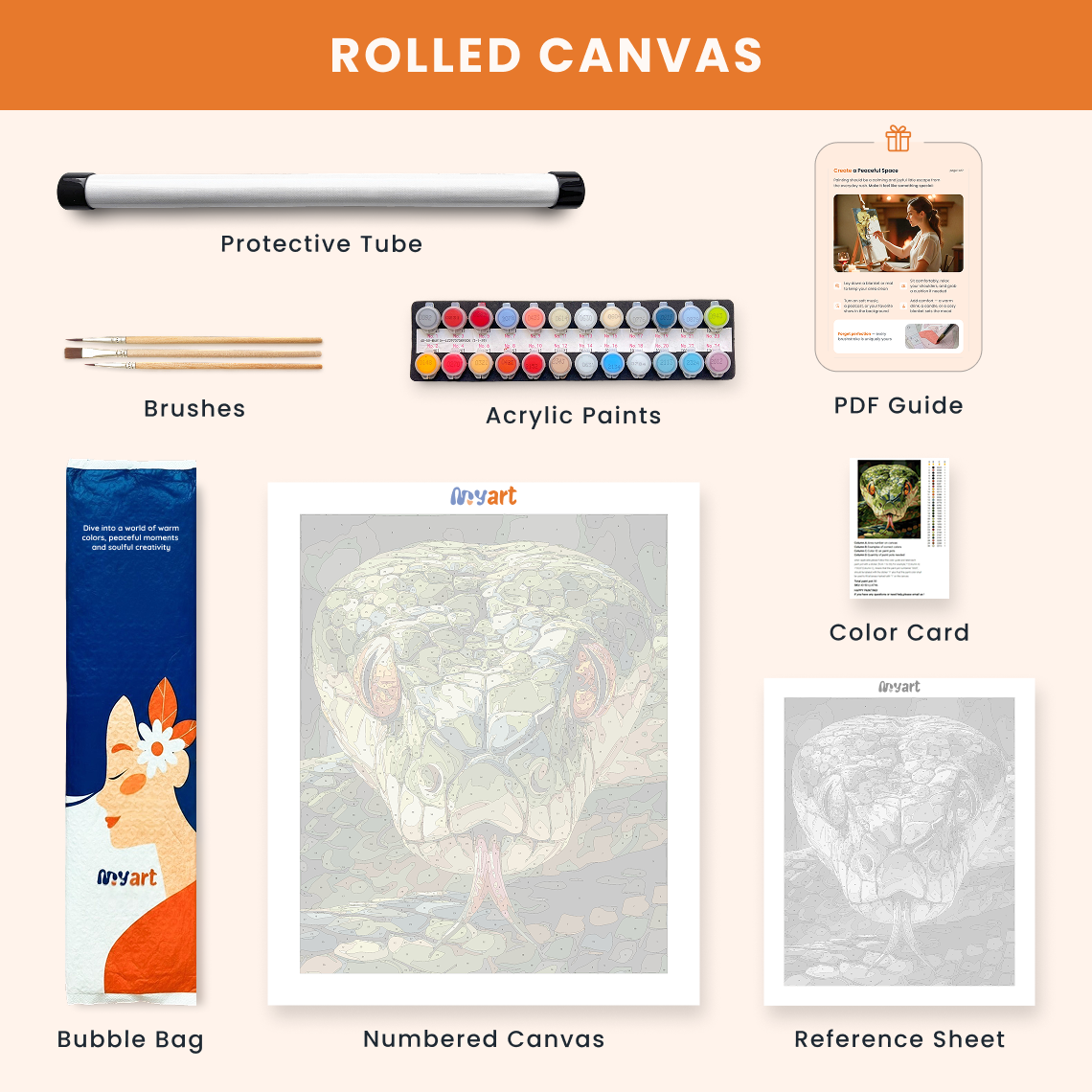 - Premium acrylic paint set (pre-mixed and numbered)