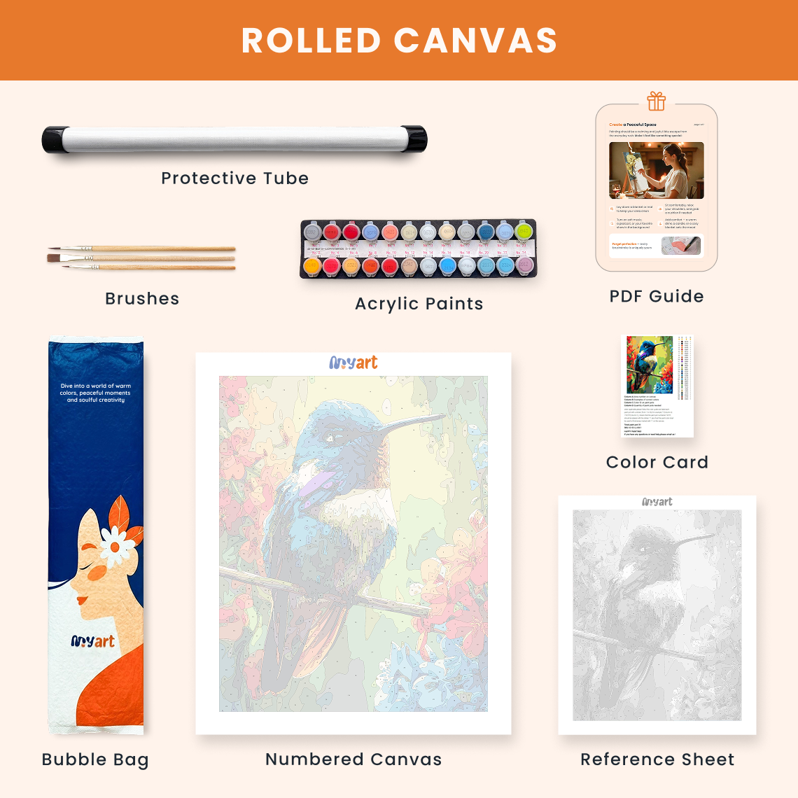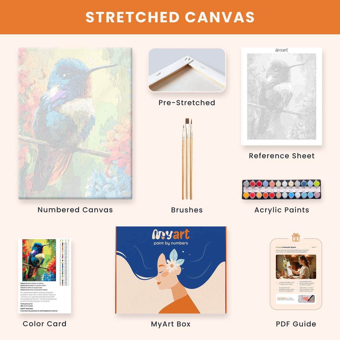 - Premium acrylic paint set (pre-mixed and numbered)
