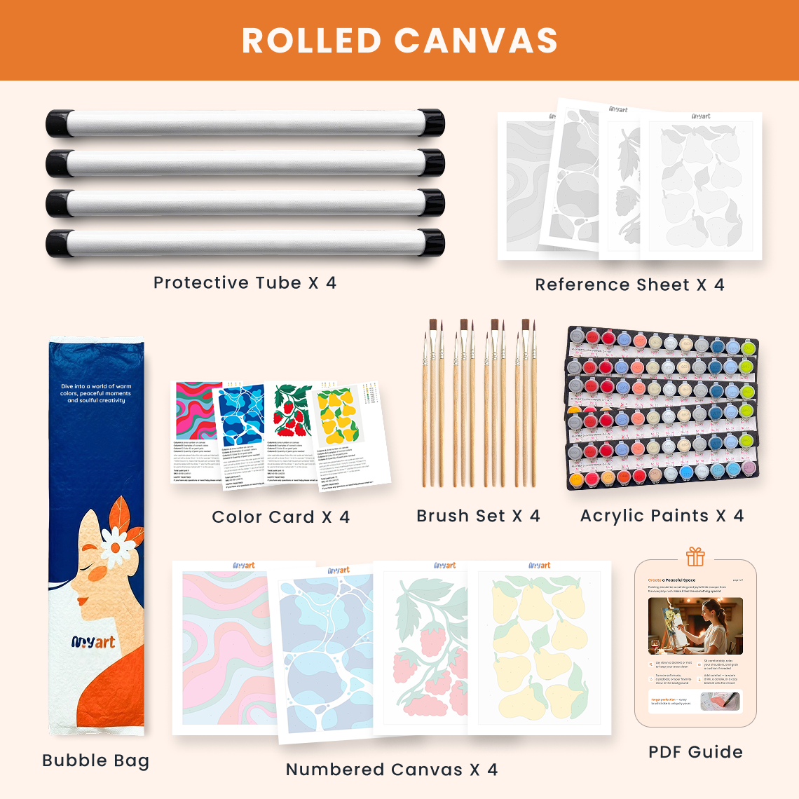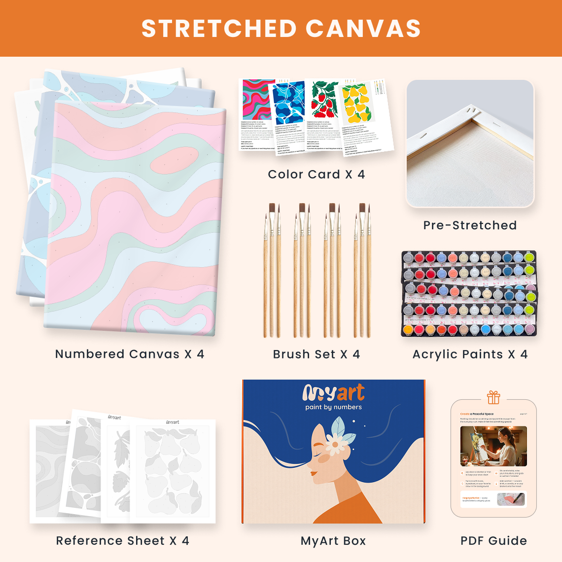- Premium acrylic paint set (pre-mixed and numbered)