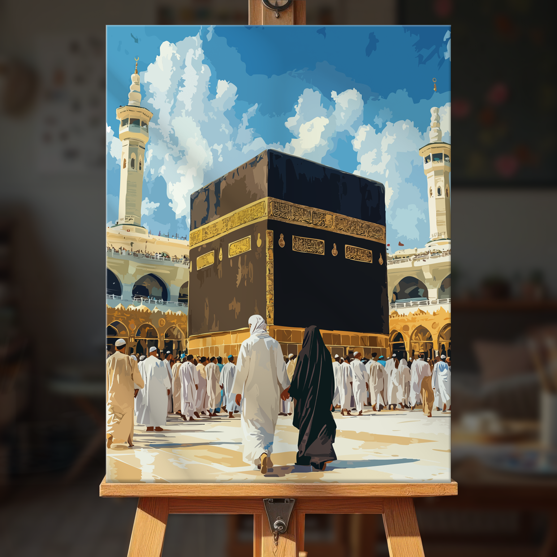 The canvas is pre-stretched on a wooden frame — ready to hang when finished.