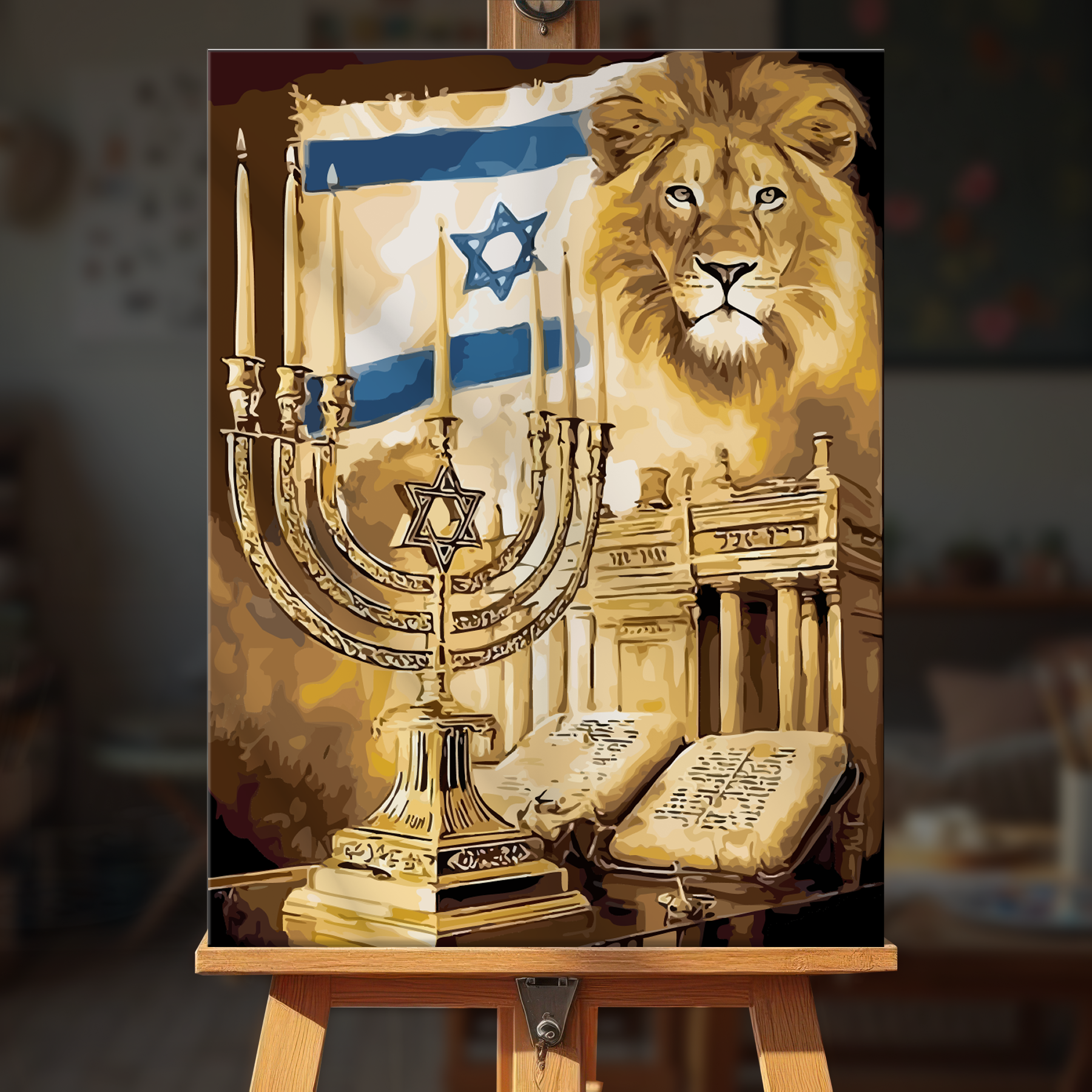 The canvas is pre-stretched on a wooden frame — ready to hang when finished.
