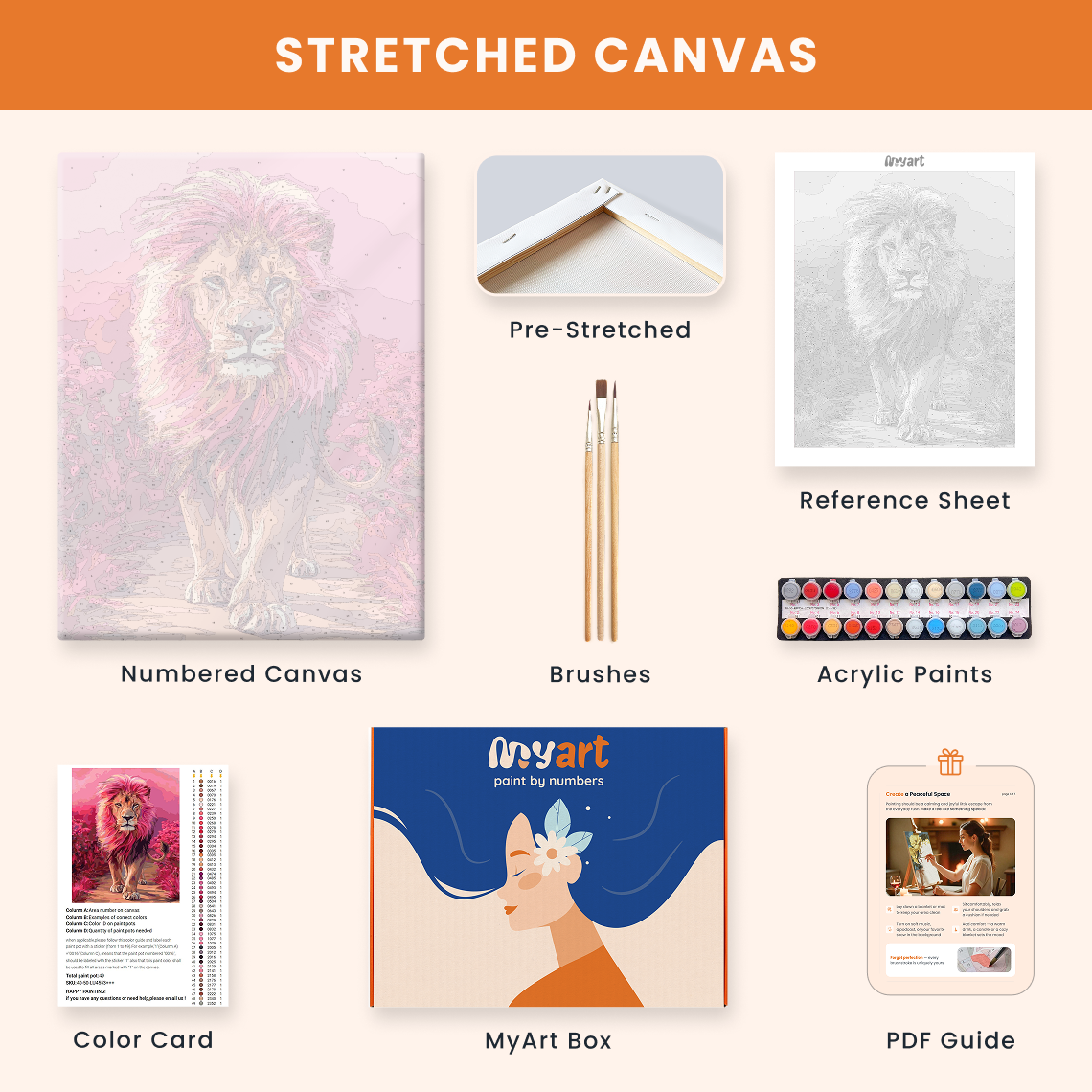 The canvas is pre-stretched on a wooden frame — ready to hang when finished.