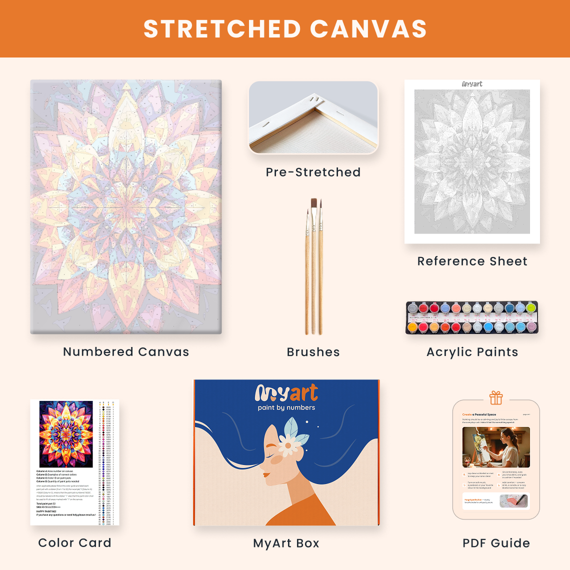 Our rich, high-quality acrylic paints glide on effortlessly. Just follow the numbers, and watch your artwork come to life.