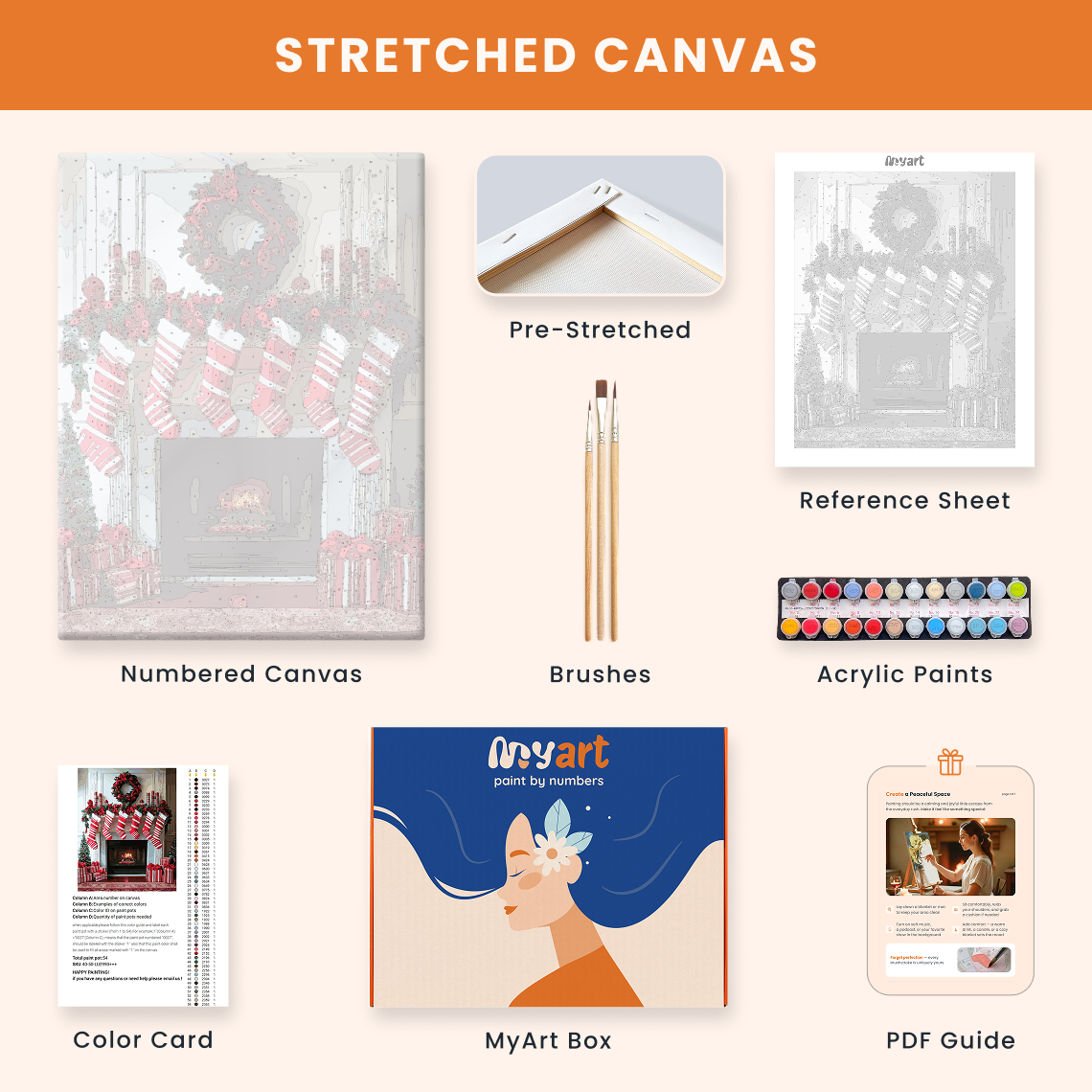 The canvas is pre-stretched on a wooden frame โ ready to hang when finished.