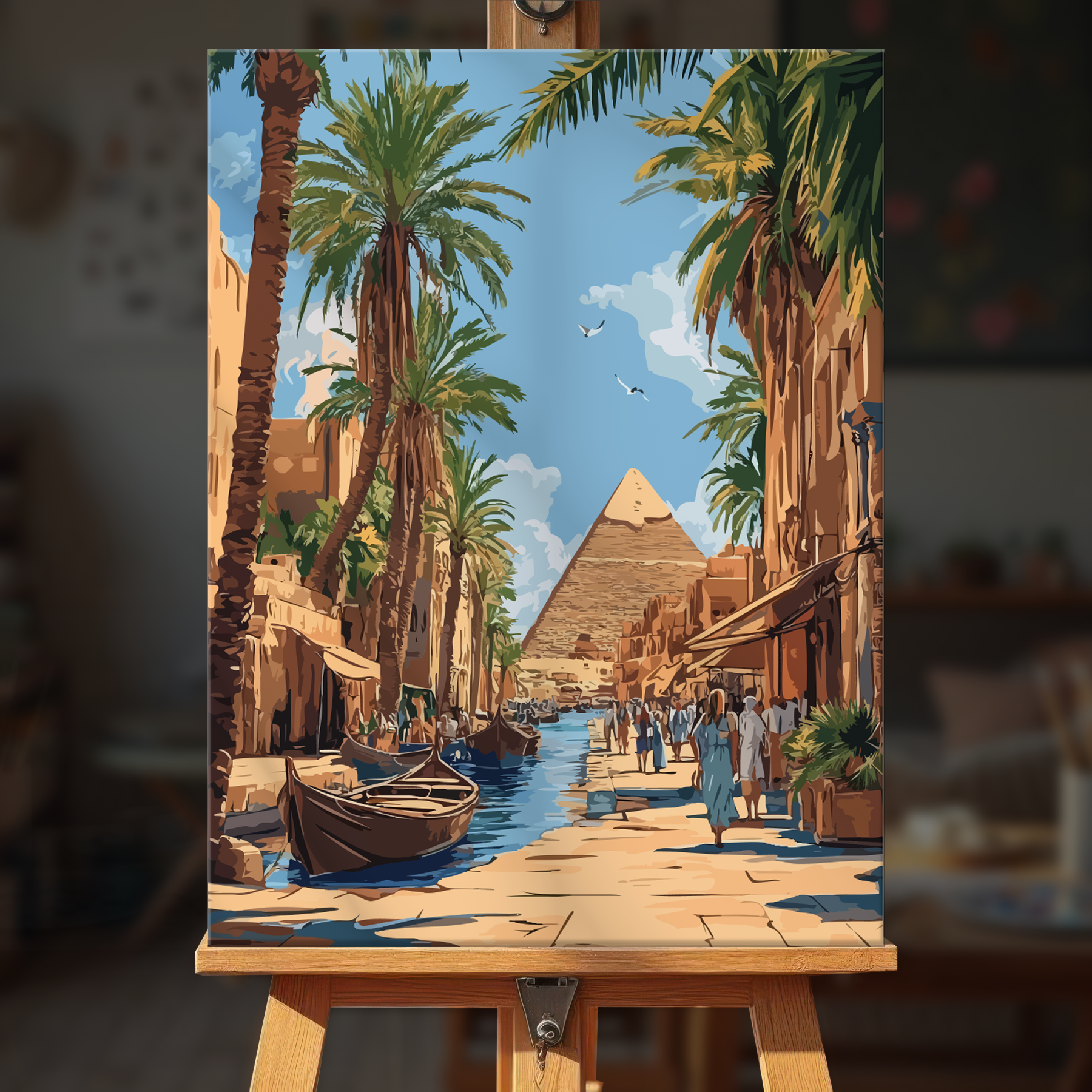 The canvas is pre-stretched on a wooden frame — ready to hang when finished.