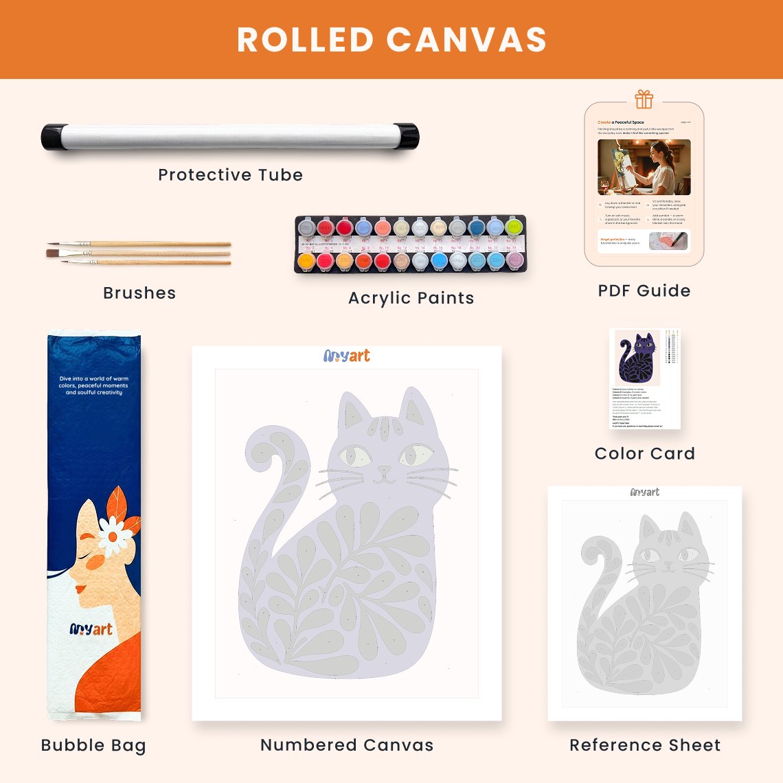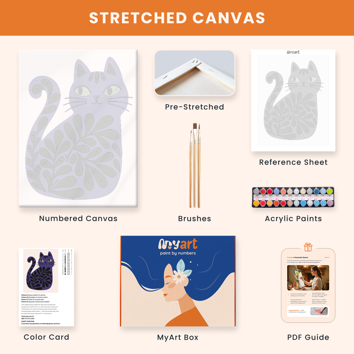 - Premium acrylic paint set (pre-mixed and numbered)