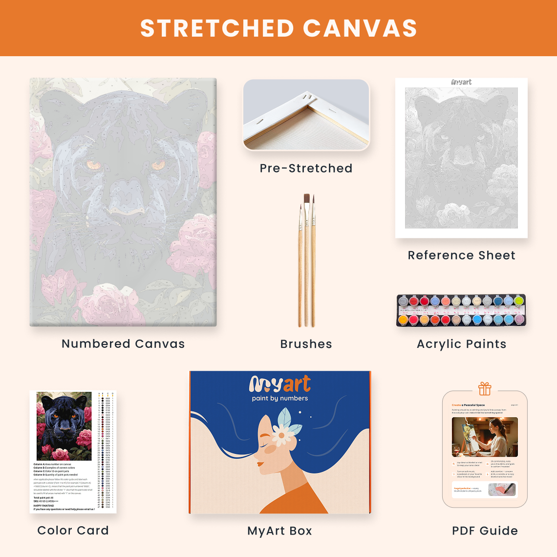 - Premium acrylic paint set (pre-mixed and numbered)